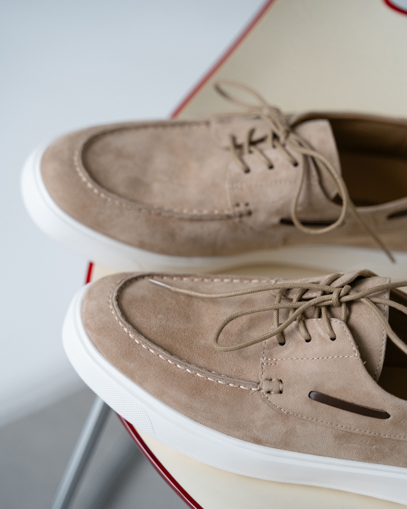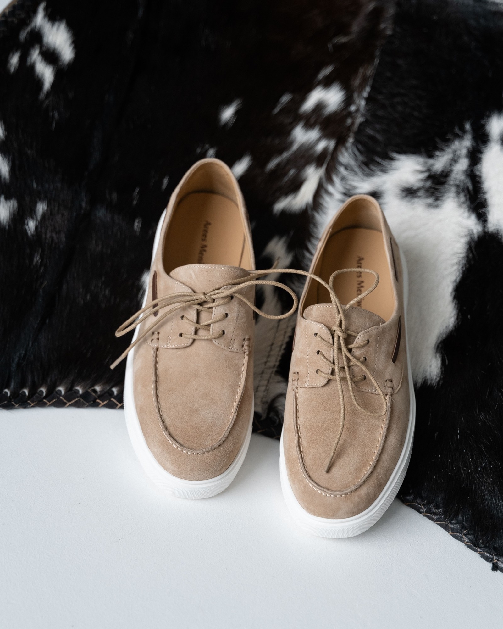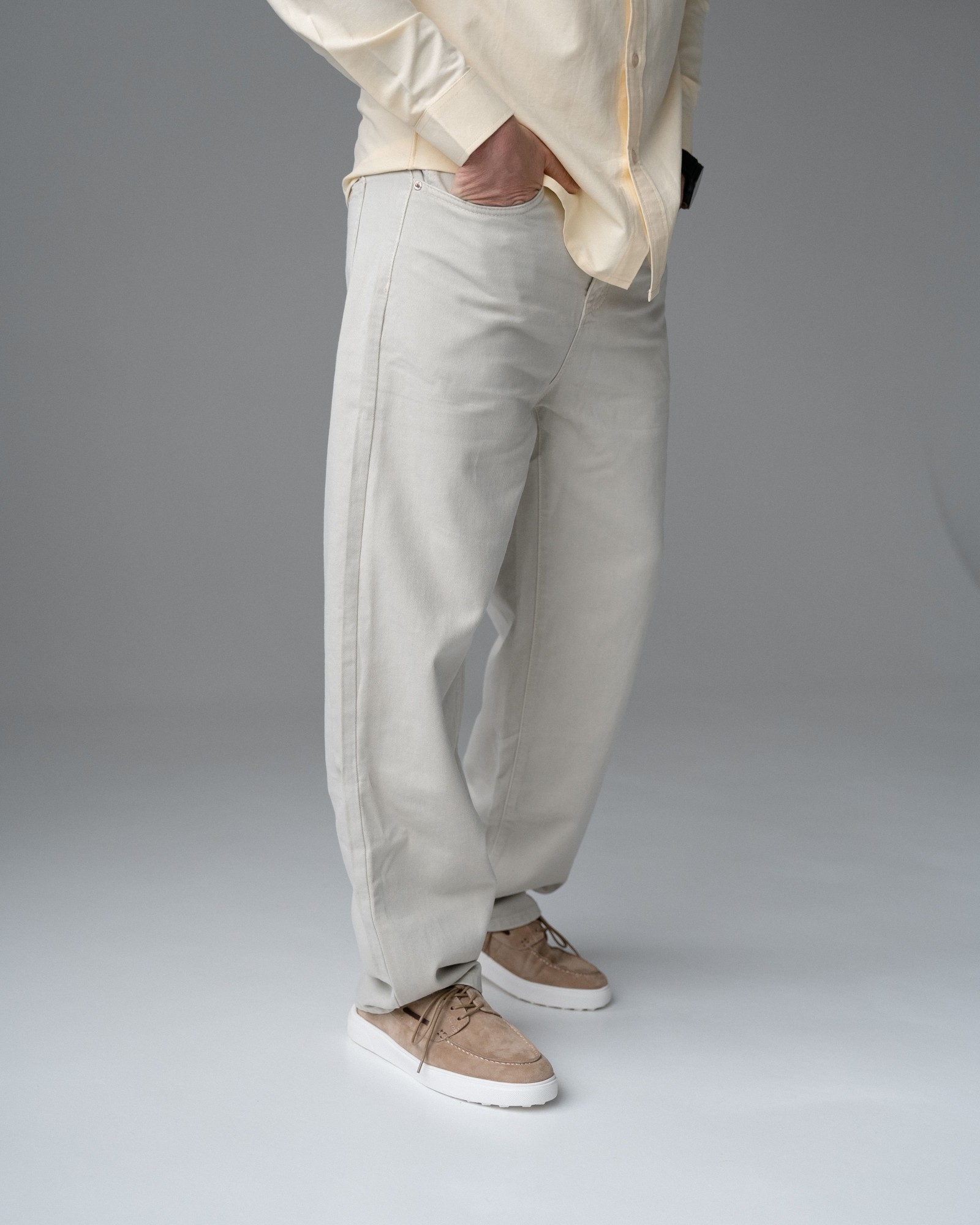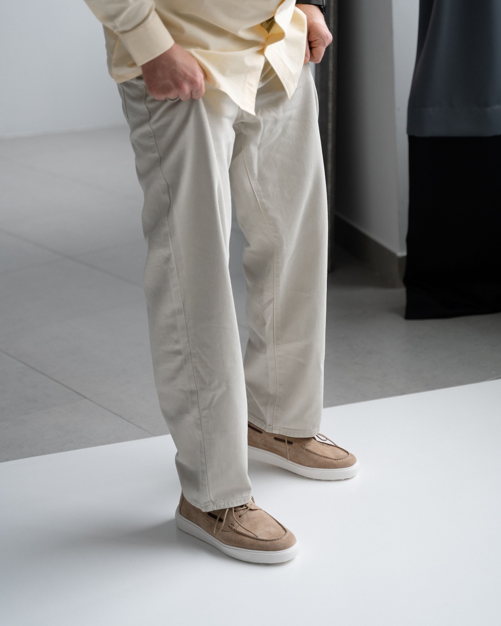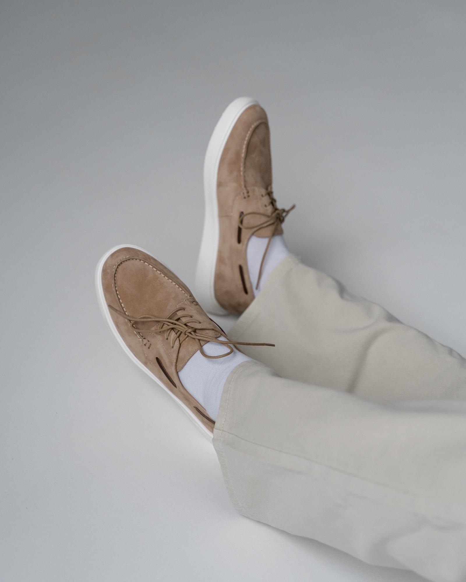 **Кэжуал с элементами топсайдеров в универсальном бежевом цвете**