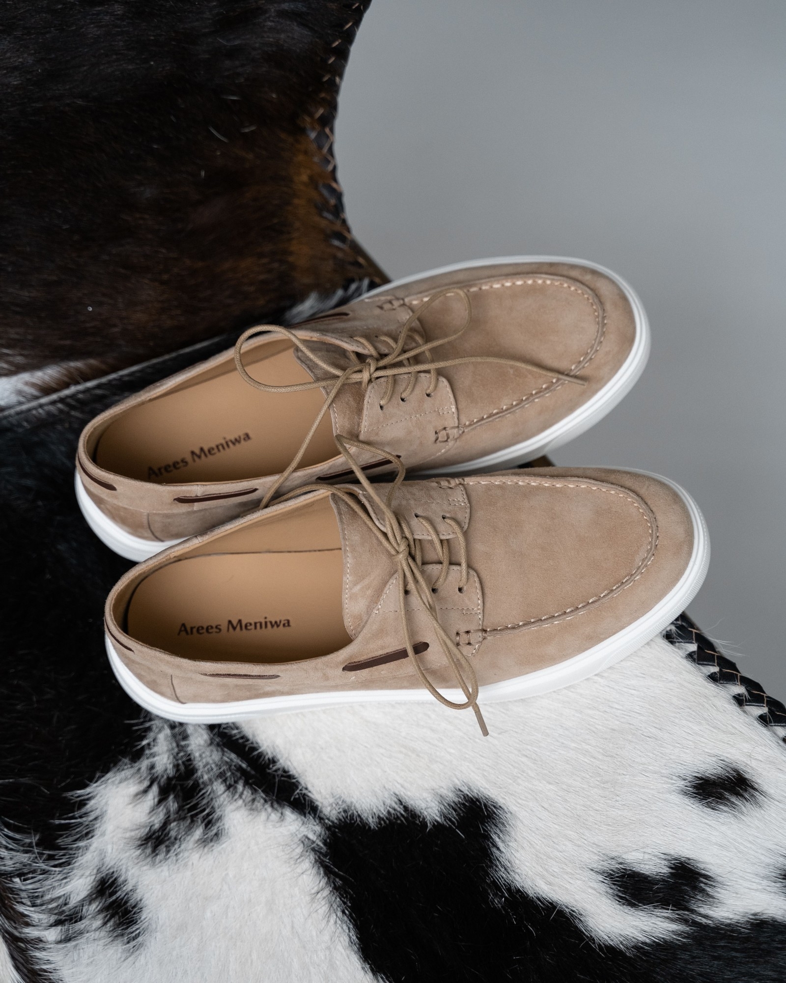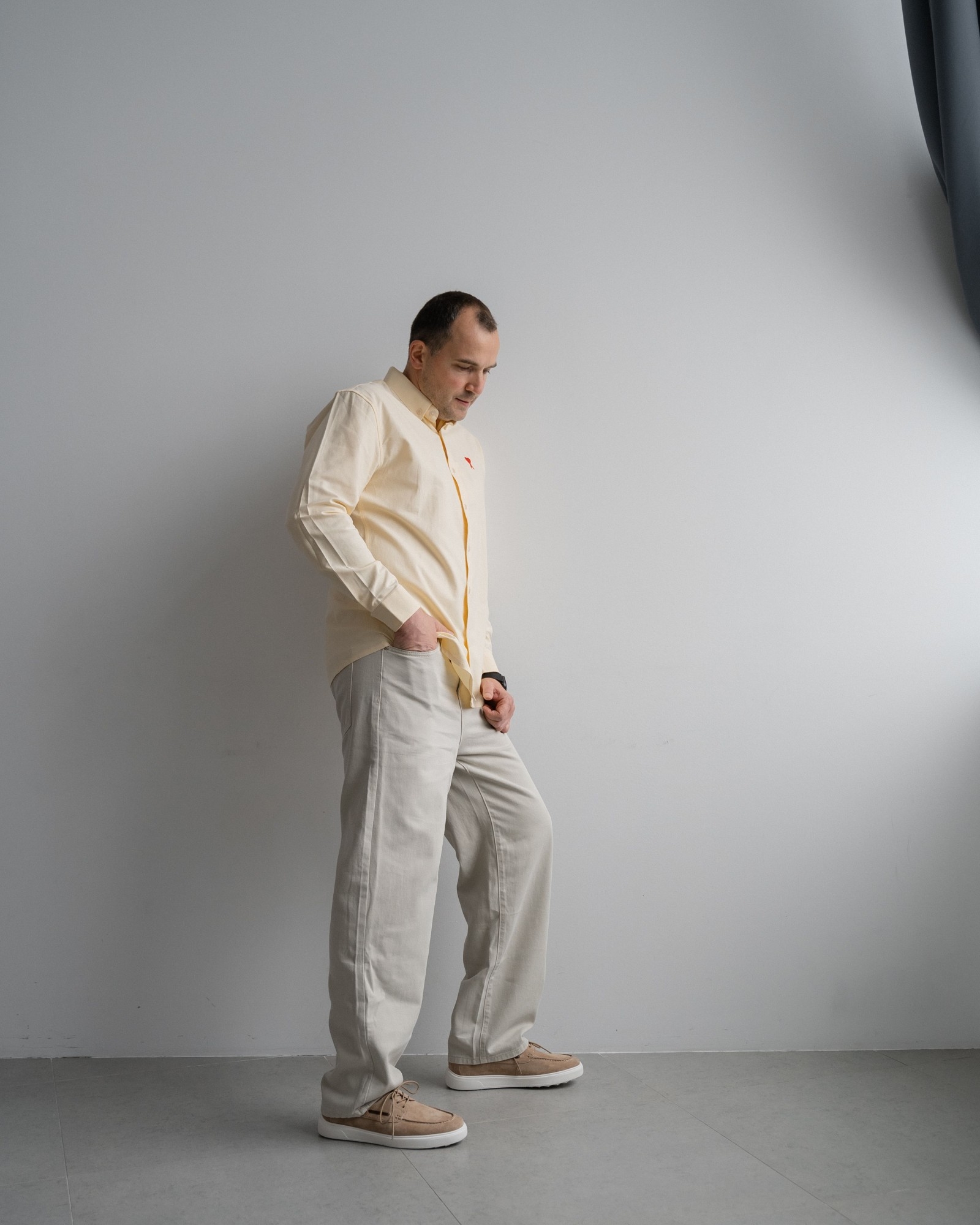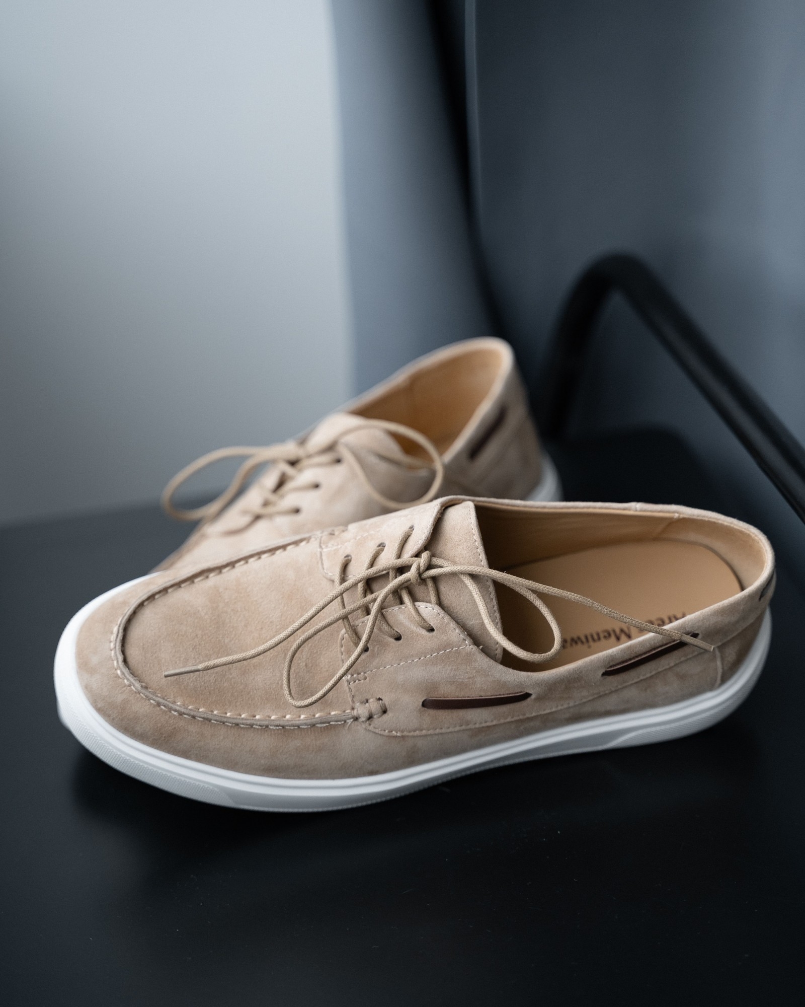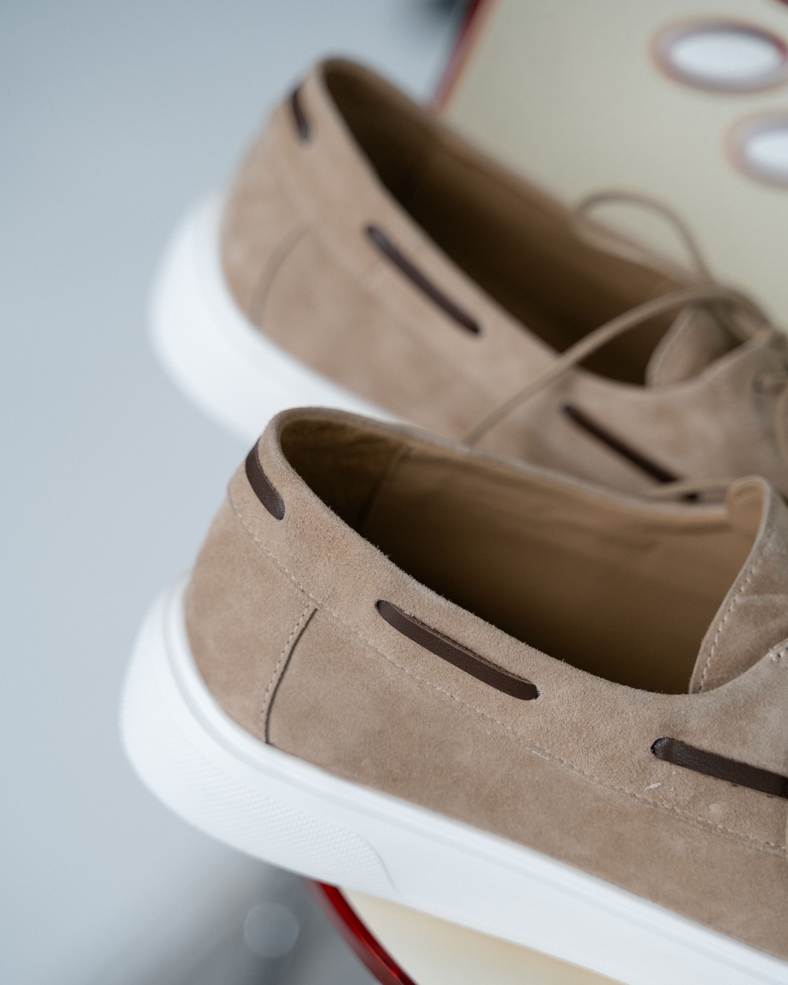 **Кэжуал с элементами топсайдеров в универсальном бежевом цвете**