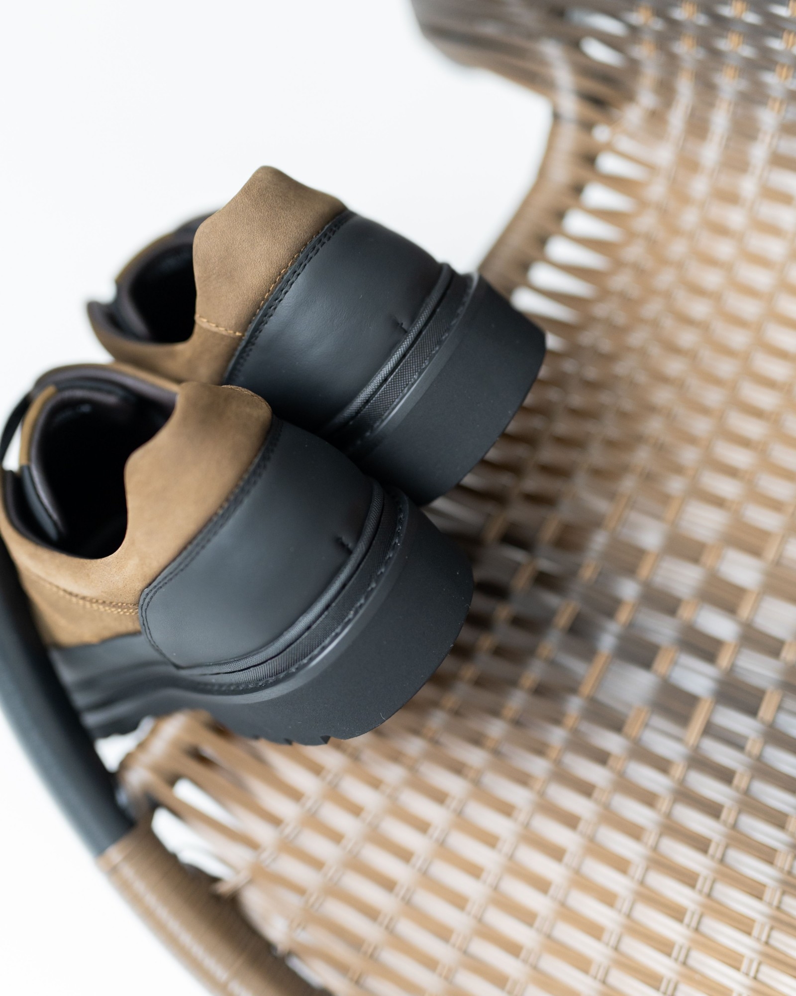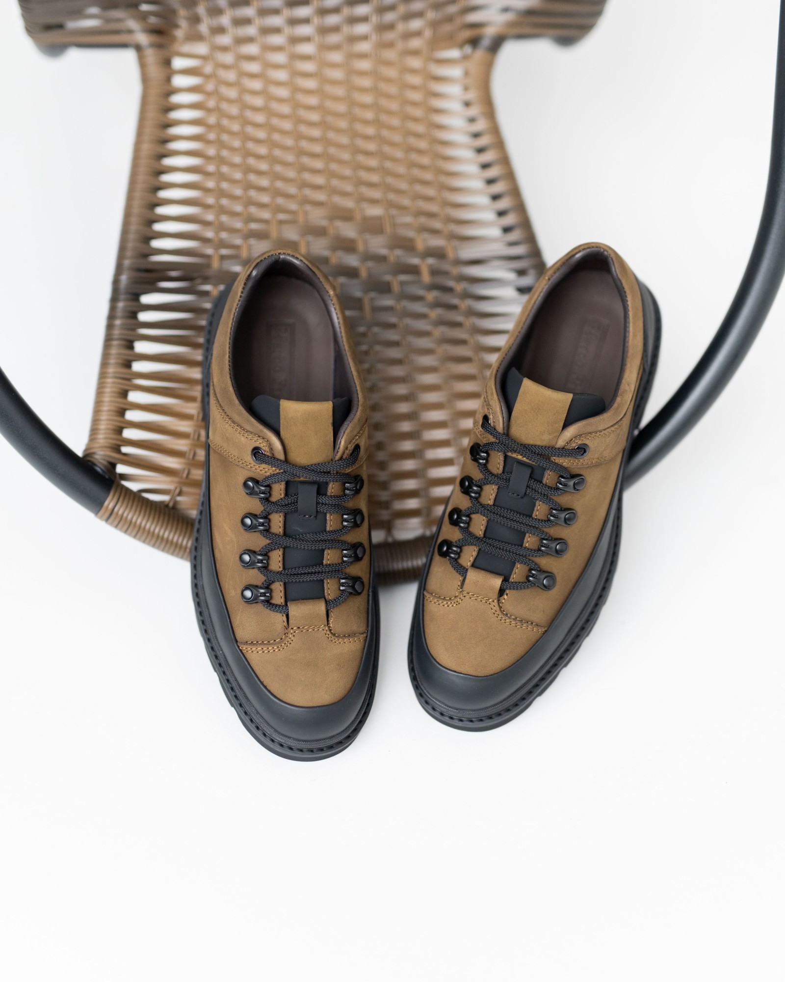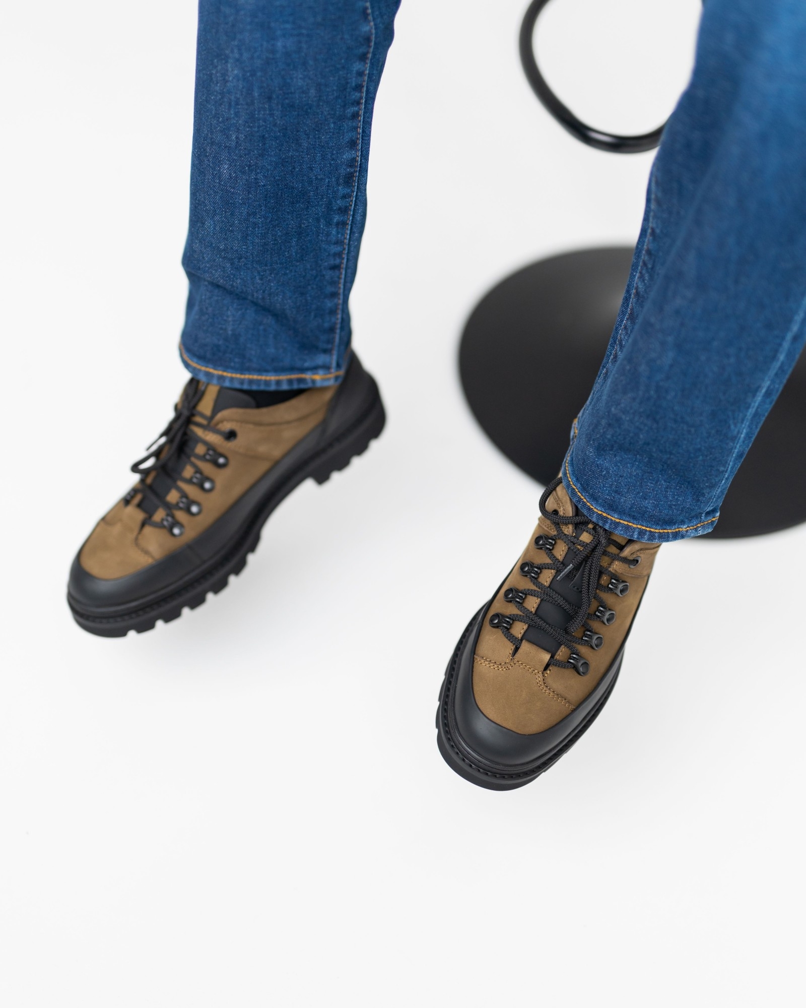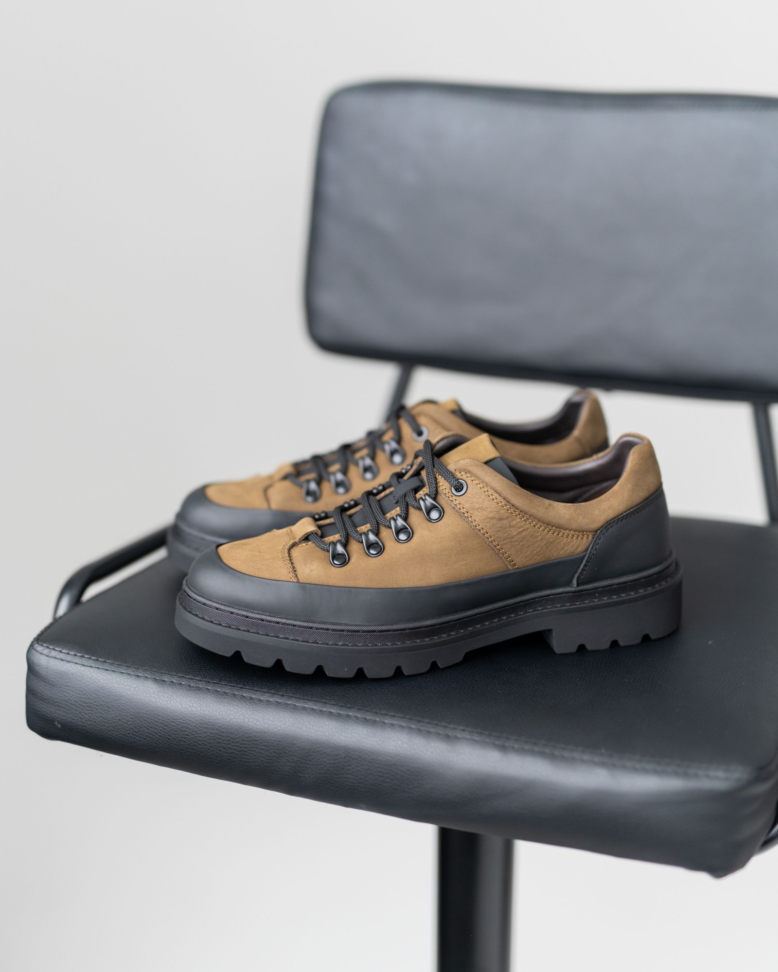 Эти хайкеры созданы для тех, кто ценит современный дизайн и практичность без лишнего шума. Верх выполнен в благородном рыжем оттенке, а нижняя часть аккуратно отделана чёрной матовой кожей — контраст получается глубоким, выразительным и подчёркивающим характер модели.