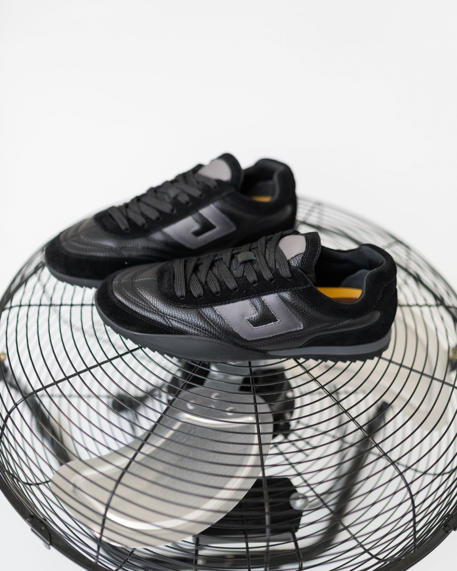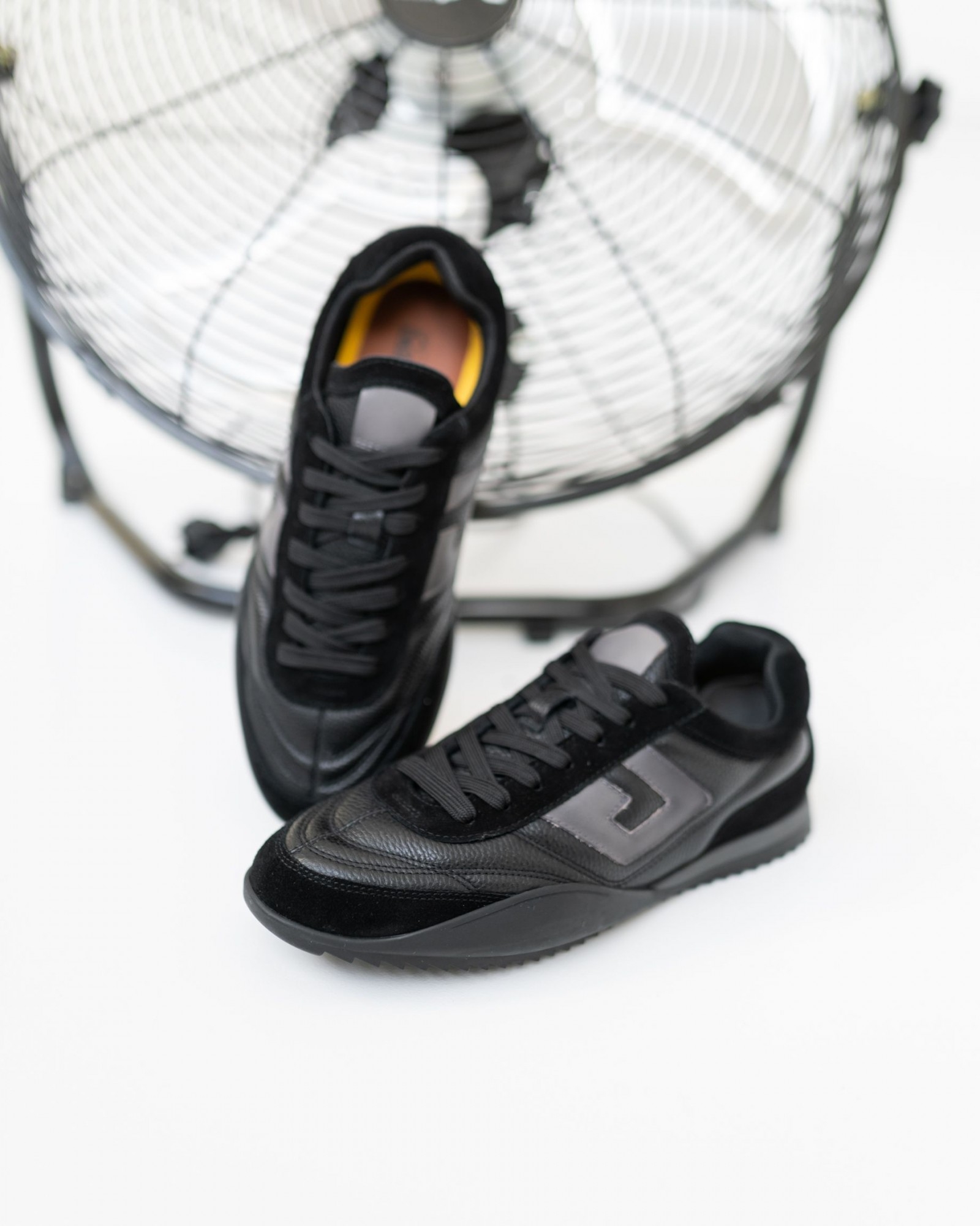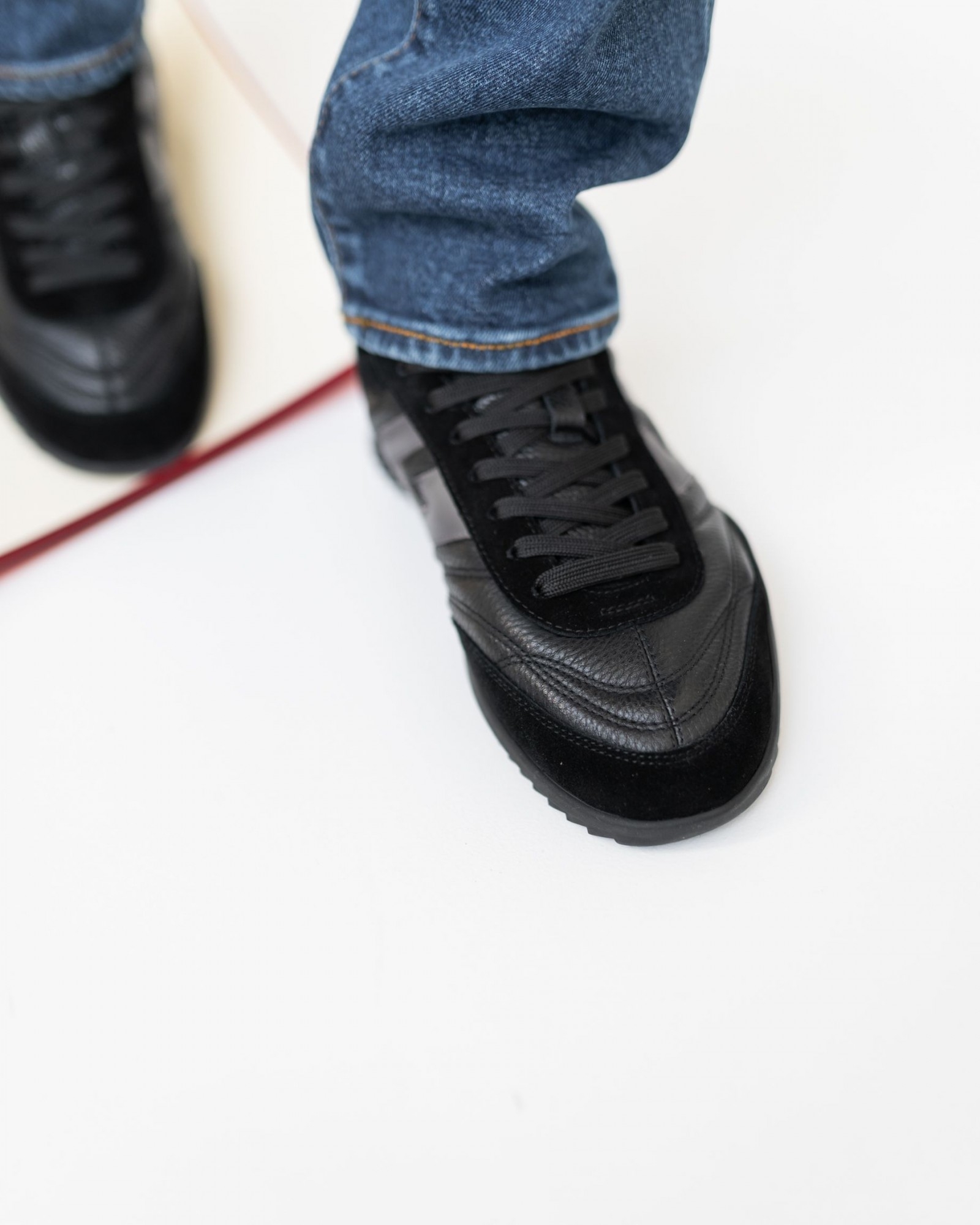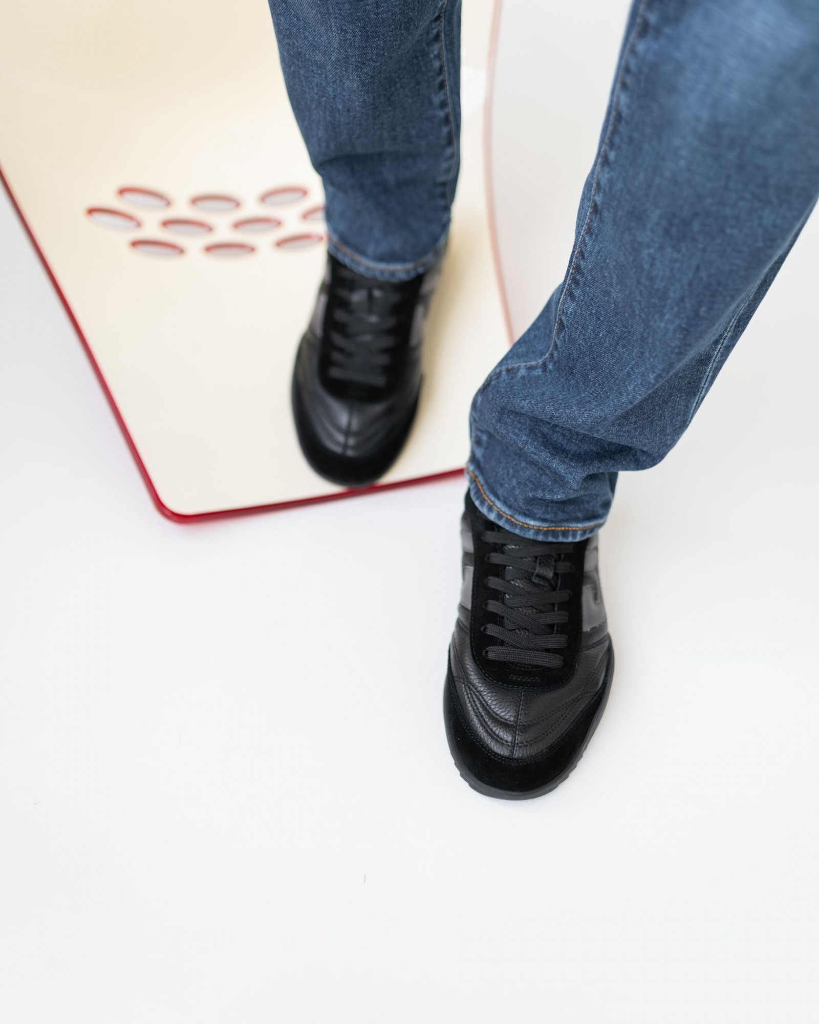 Сникеры из премиальной мягкой кожи и замши в насыщенном чёрном цвете — идеальный баланс между стилем и комфортом. Продуманная конструкция и удобная анатомическая стелька обеспечивают лёгкость при ходьбе, а шнуровка гарантирует надёжную фиксацию стопы. Гибкая, но устойчивая подошва адаптируется к движениям, создавая ощущение абсолютного комфорта в течение дня. Универсальный дизайн позволяет сочетать пару как с повседневной, так и со стильной городской одеждой.