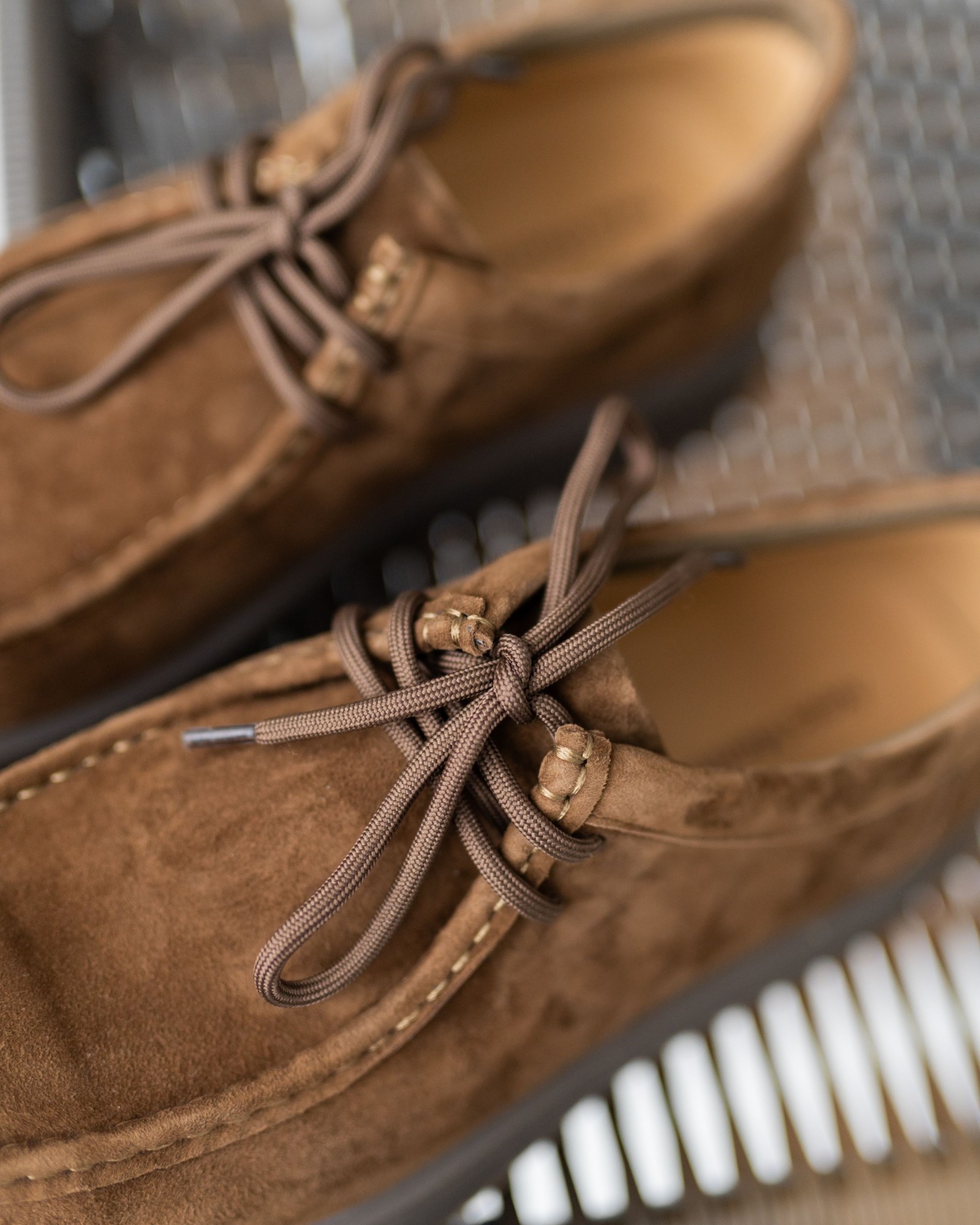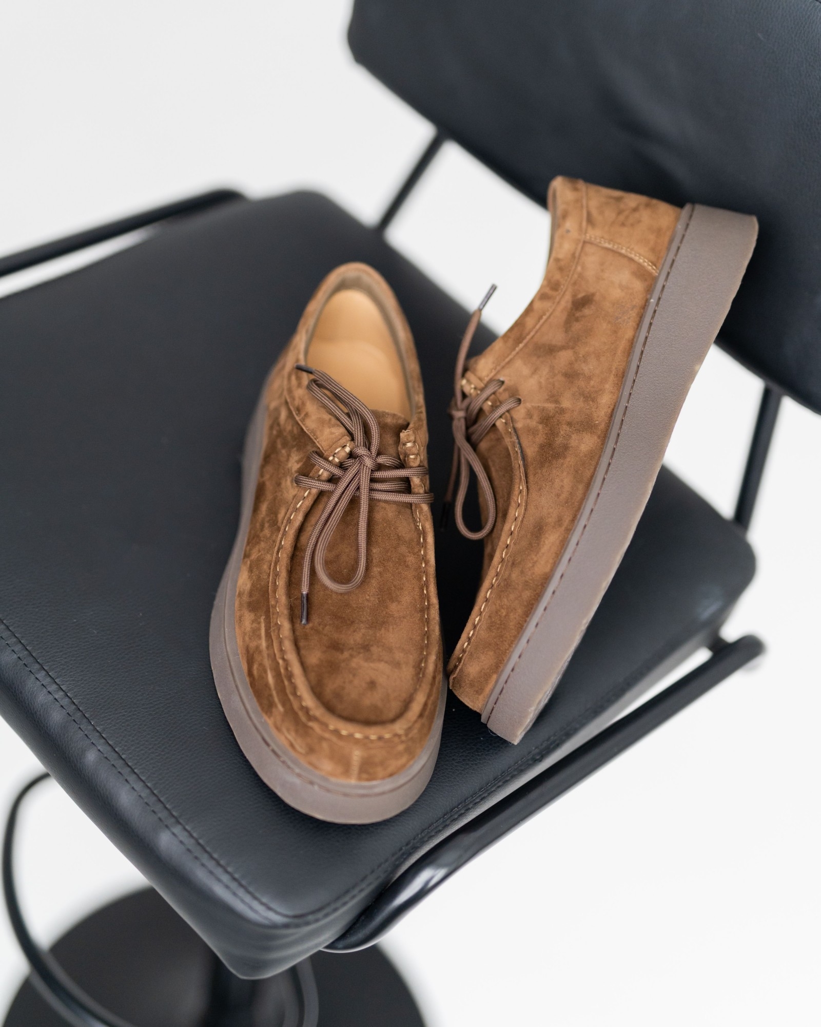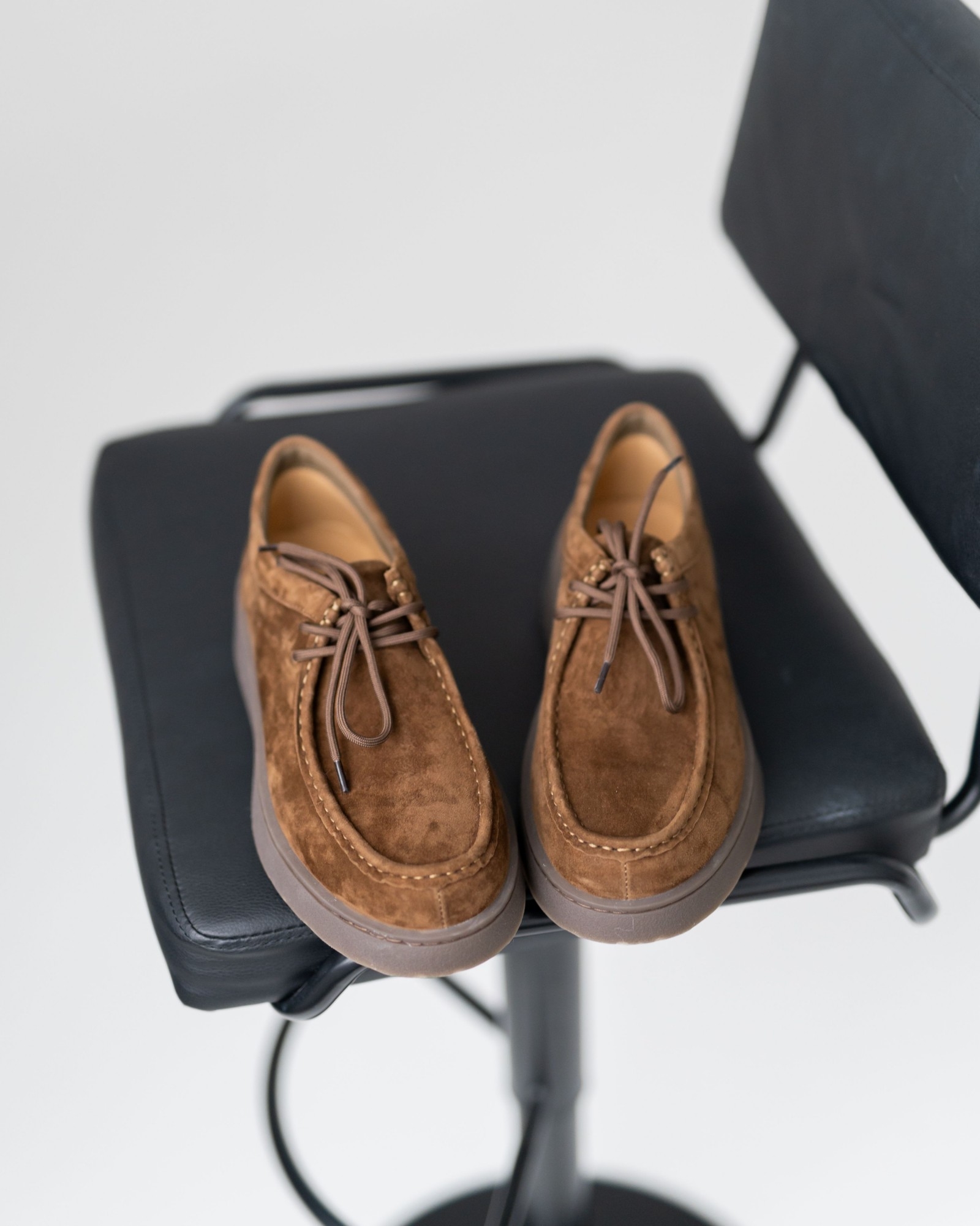 Рыжие замшевые дерби на платформенной подошве — сочетание элегантности и современного стиля, созданное для уверенного повседневного образа. Мягкая замша подчёркивает богатство цвета, а аккуратные шнурки и декоративный шов на носке добавляют паре утончённости. Платформенная подошва даёт комфорт при ходьбе и визуально освежает силуэт, делая модель актуальной и динамичной. Такая обувь отлично справляется с ролью стильного акцента, оставаясь при этом практичной и удобной для ежедневного использования.