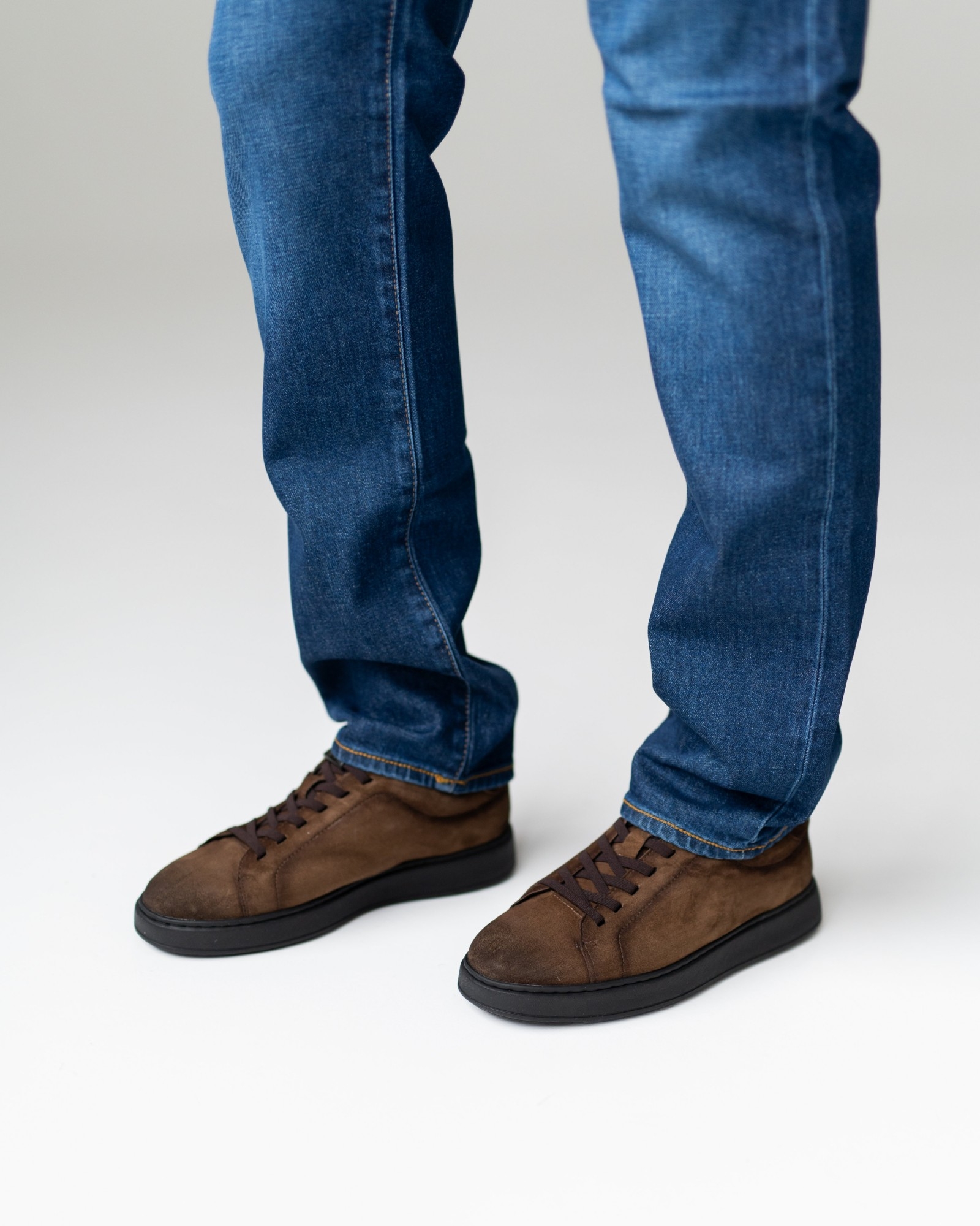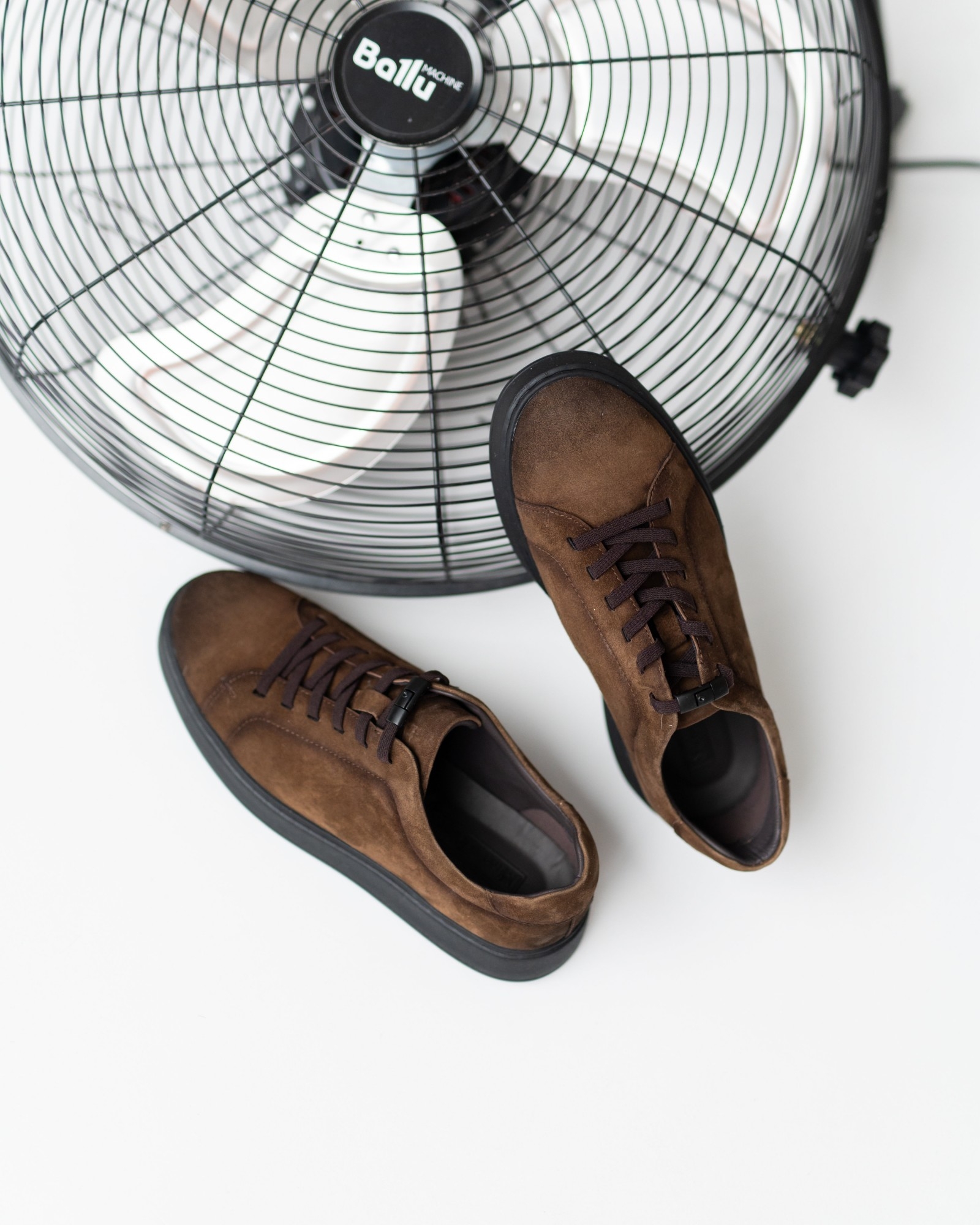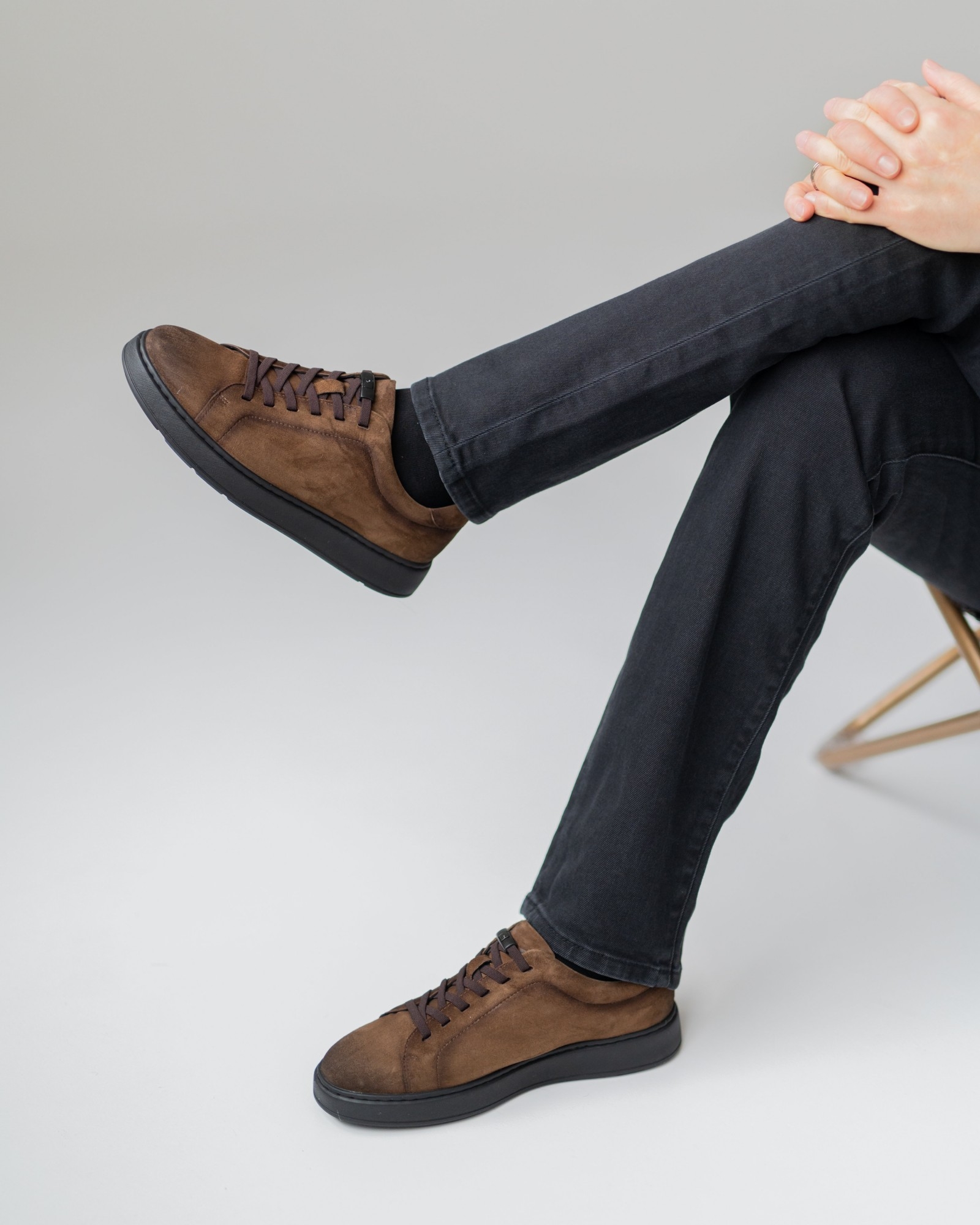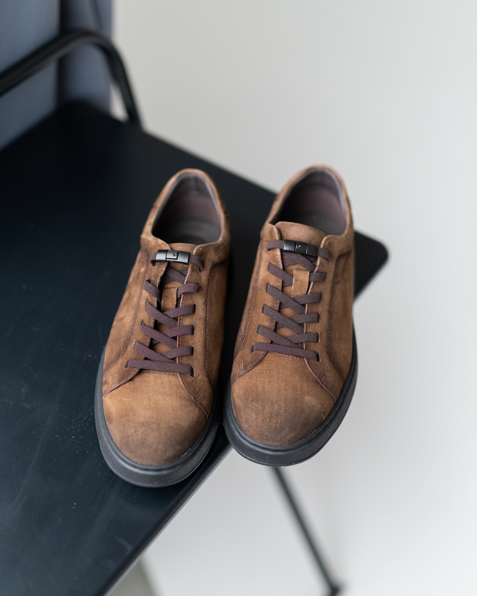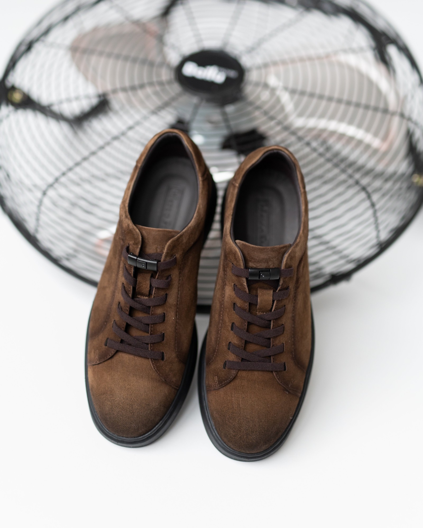 Эта модель сразу притягивает взгляд за счёт сложного цвета. Мягкая рыжая замша плавно переходит от тёмно-коричневого оттенка к светло-рыжему, создавая живой, глубокий градиент. Коричневая подошва с лёгкой структурой поддерживает цветовую гамму и добавляет визуальной цельности образу.