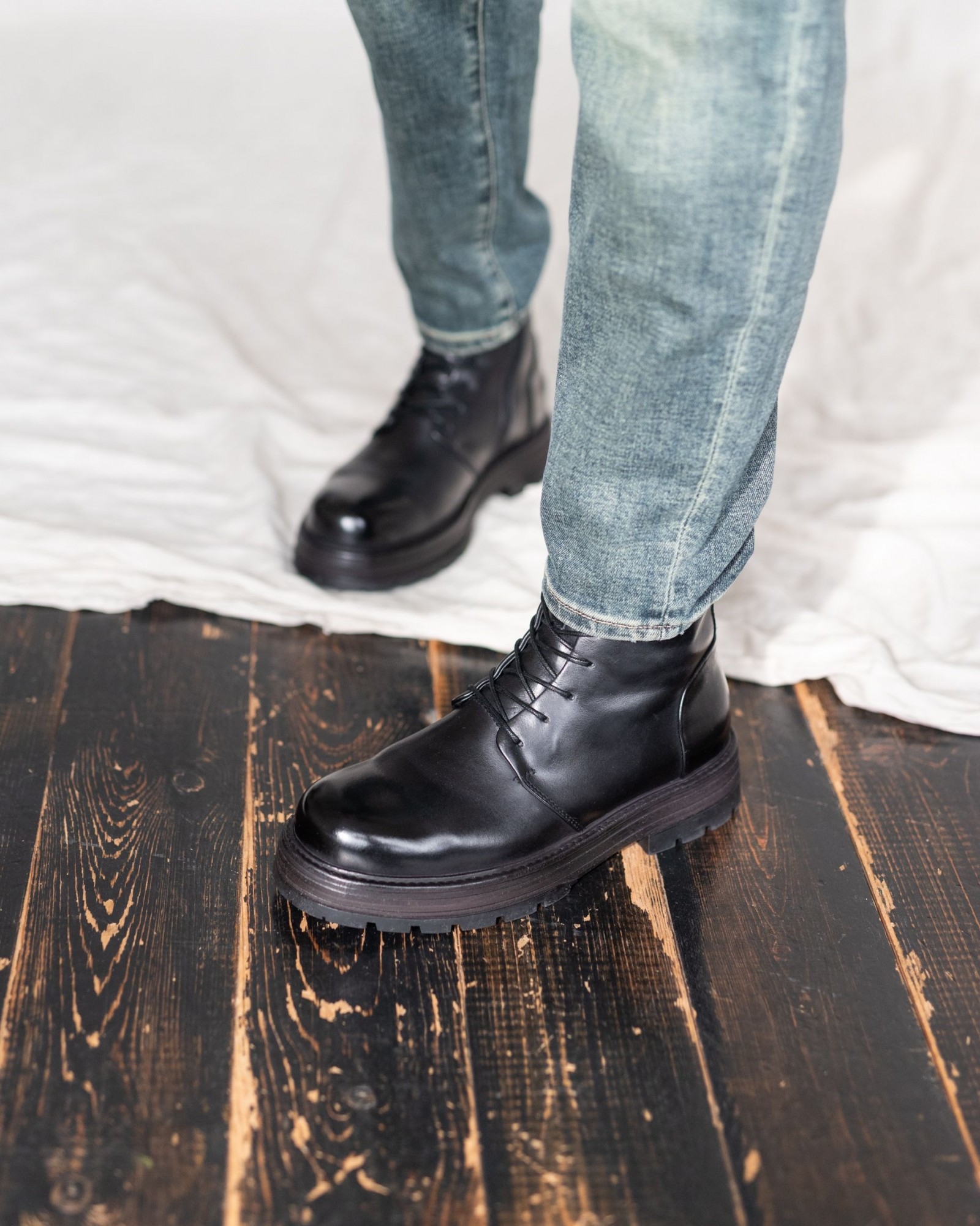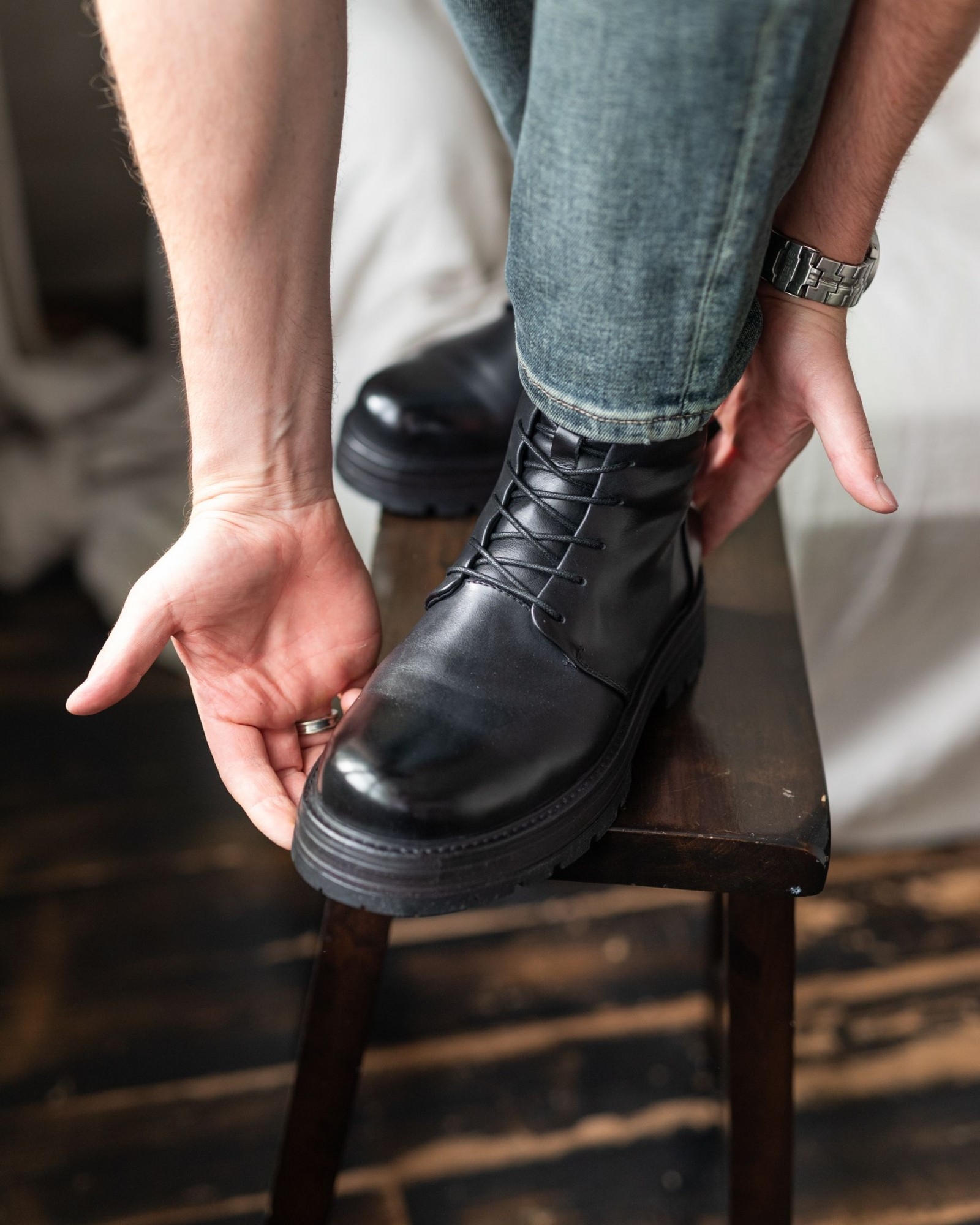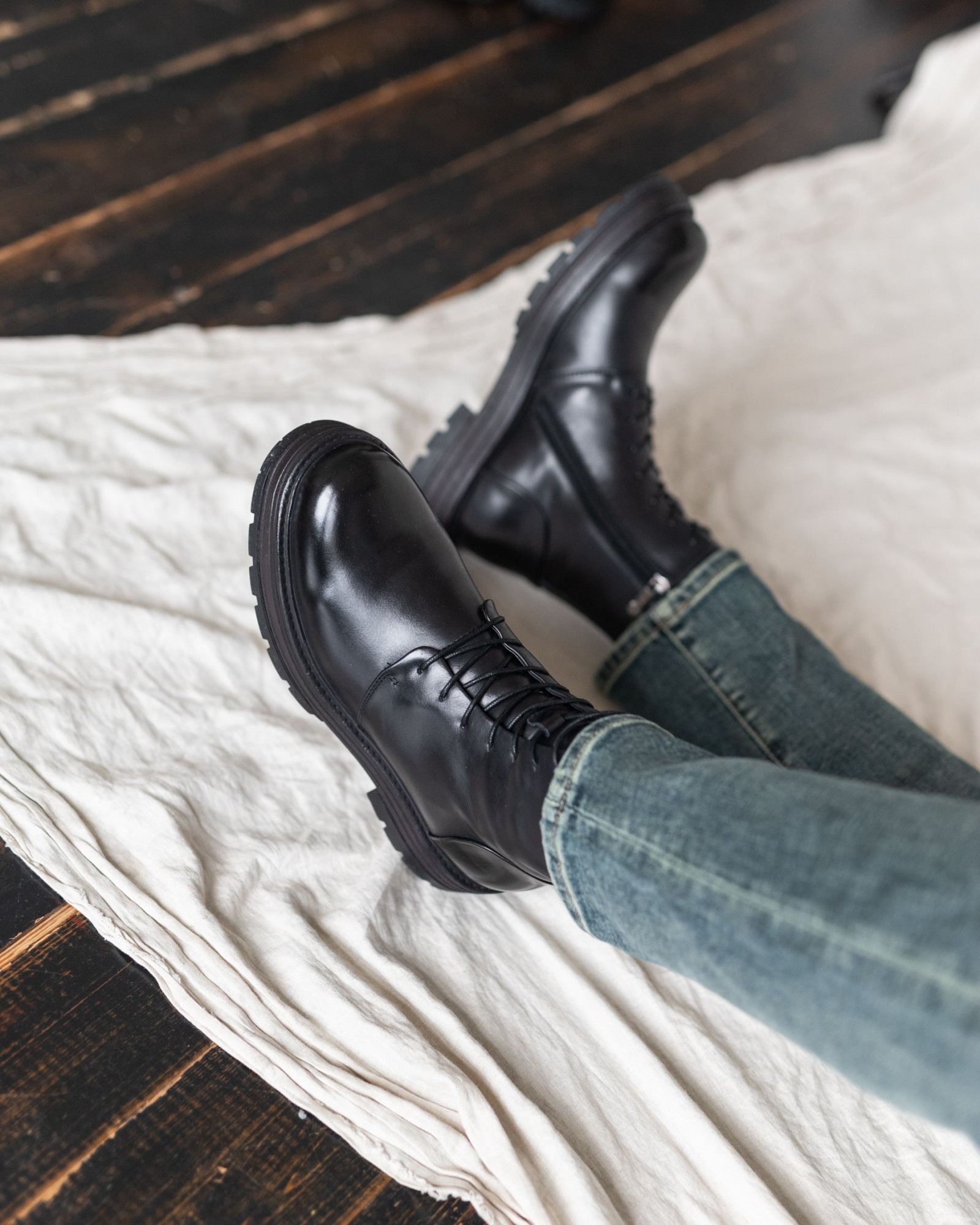 Эти стильные ботинки из глянцевой натуральной кожи — идеальный выбор для зимы. Внутри — натуральный мех, который обеспечивает тепло и комфорт даже в морозы. Удобный замок и шнурки гарантируют лёгкость надевания и плотную фиксацию. Высокий силуэт защищает от снега и холода, а прочная подошва с протектором обеспечивает надёжное сцепление с поверхностью.