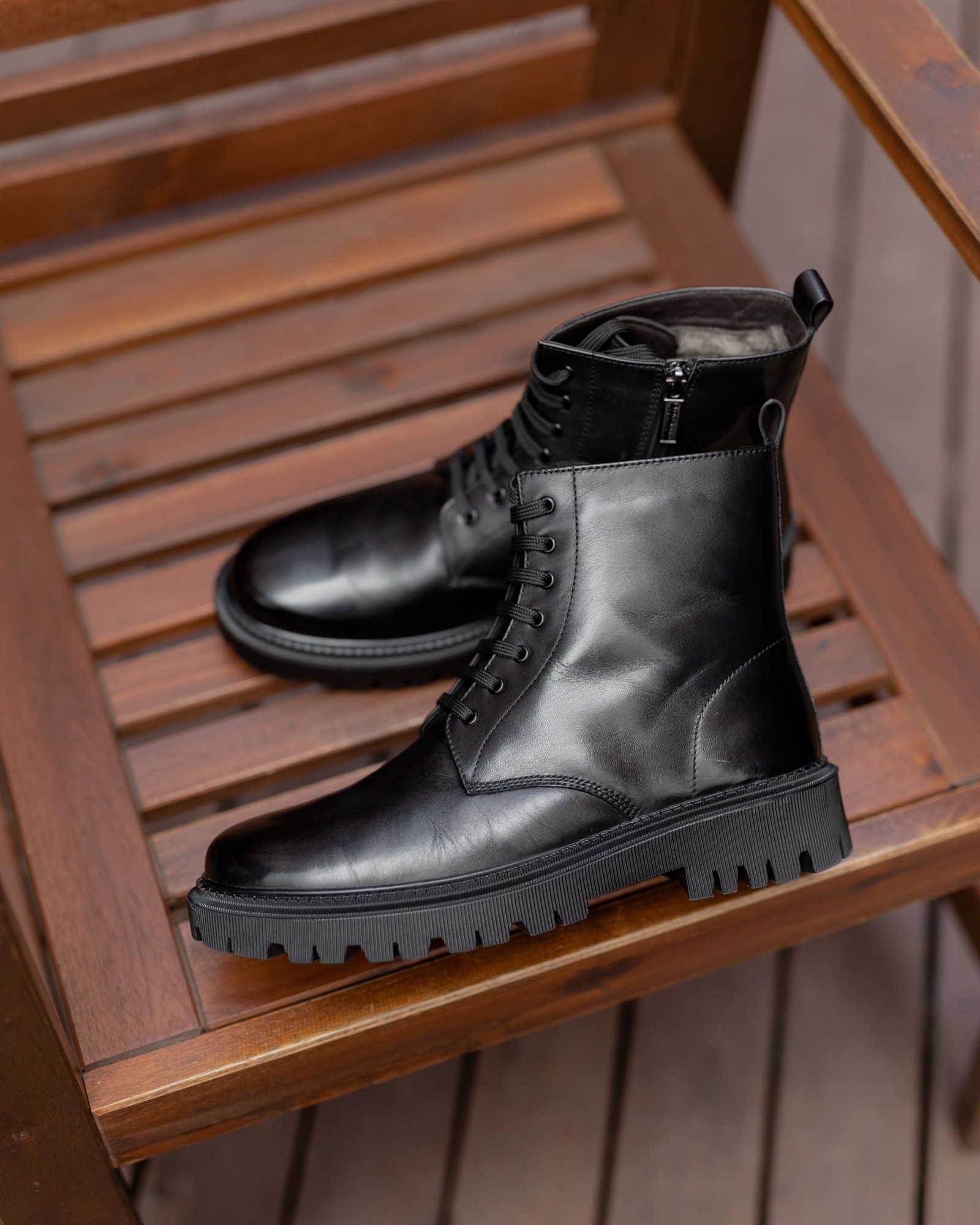 - **Внутренняя отделка:** Натуральный мех (овчина) создаёт уют и тепло, идеально поддерживая комфортную температуру внутри ботинок.