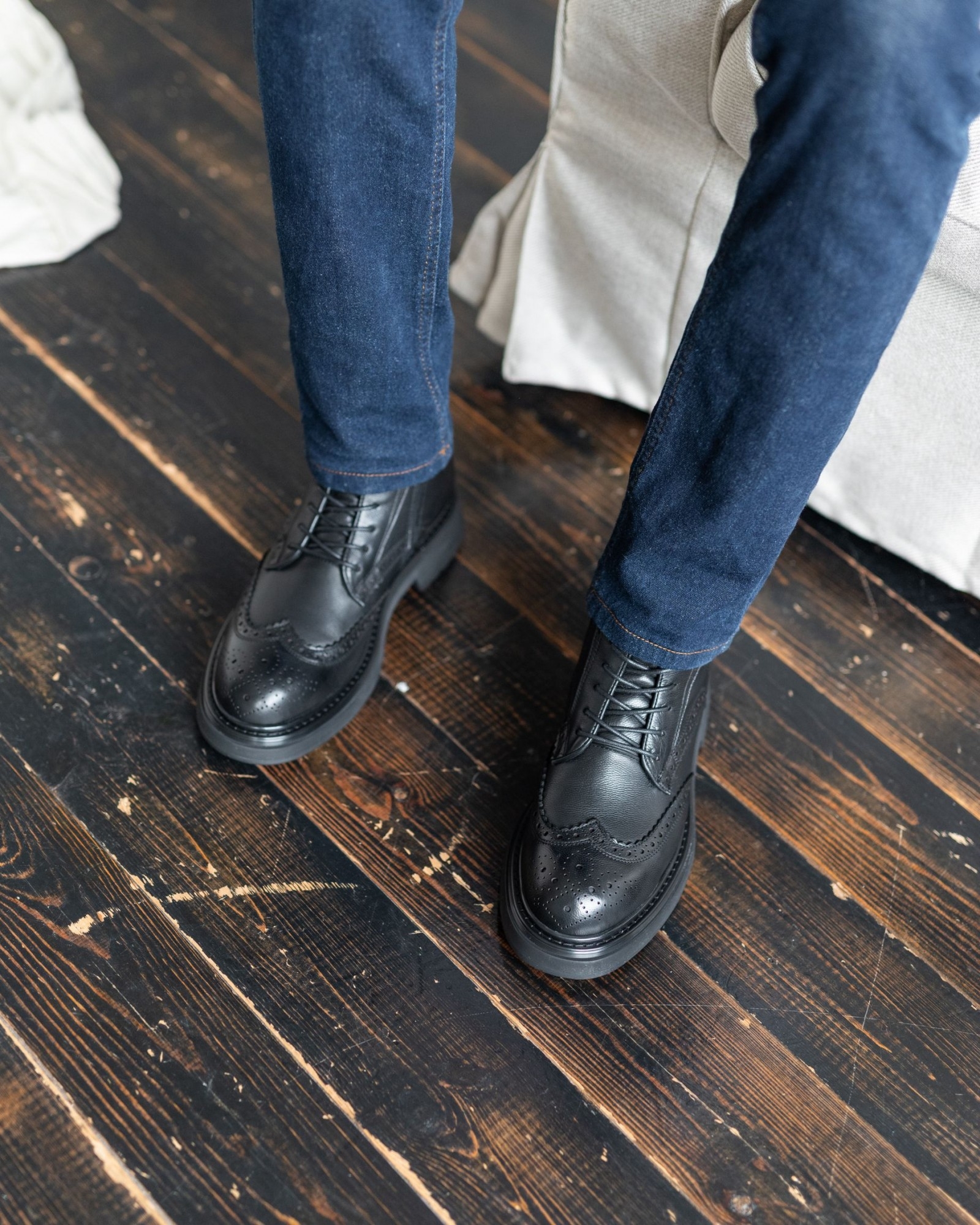 **Мужские чёрные броги на массивной подошве с утеплением**