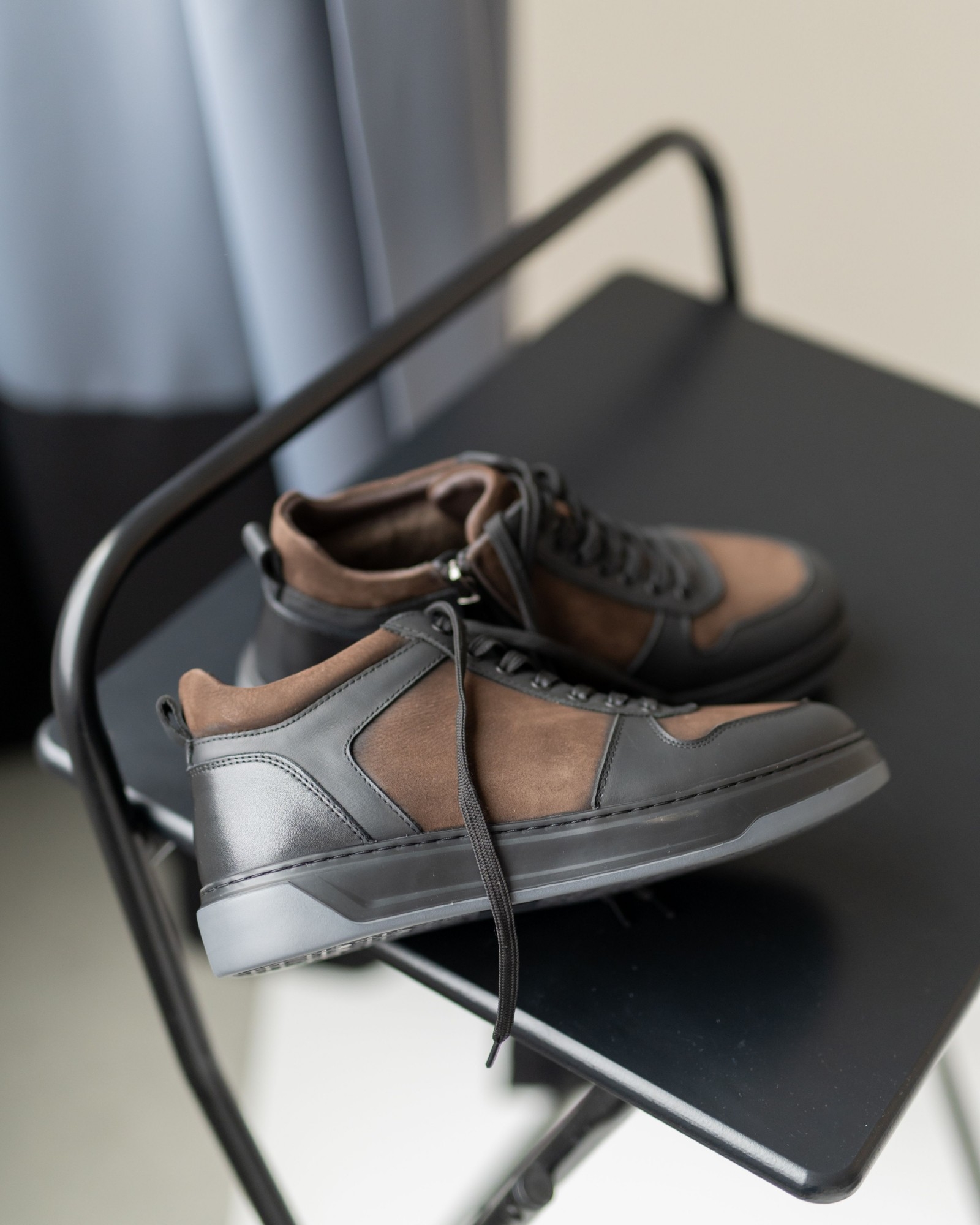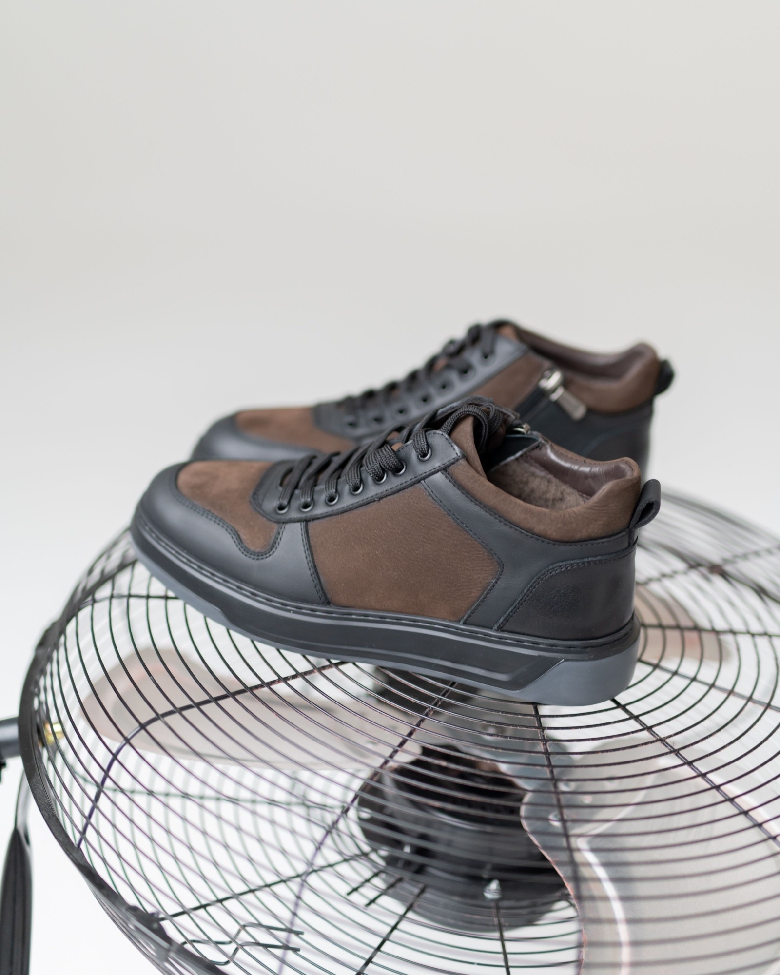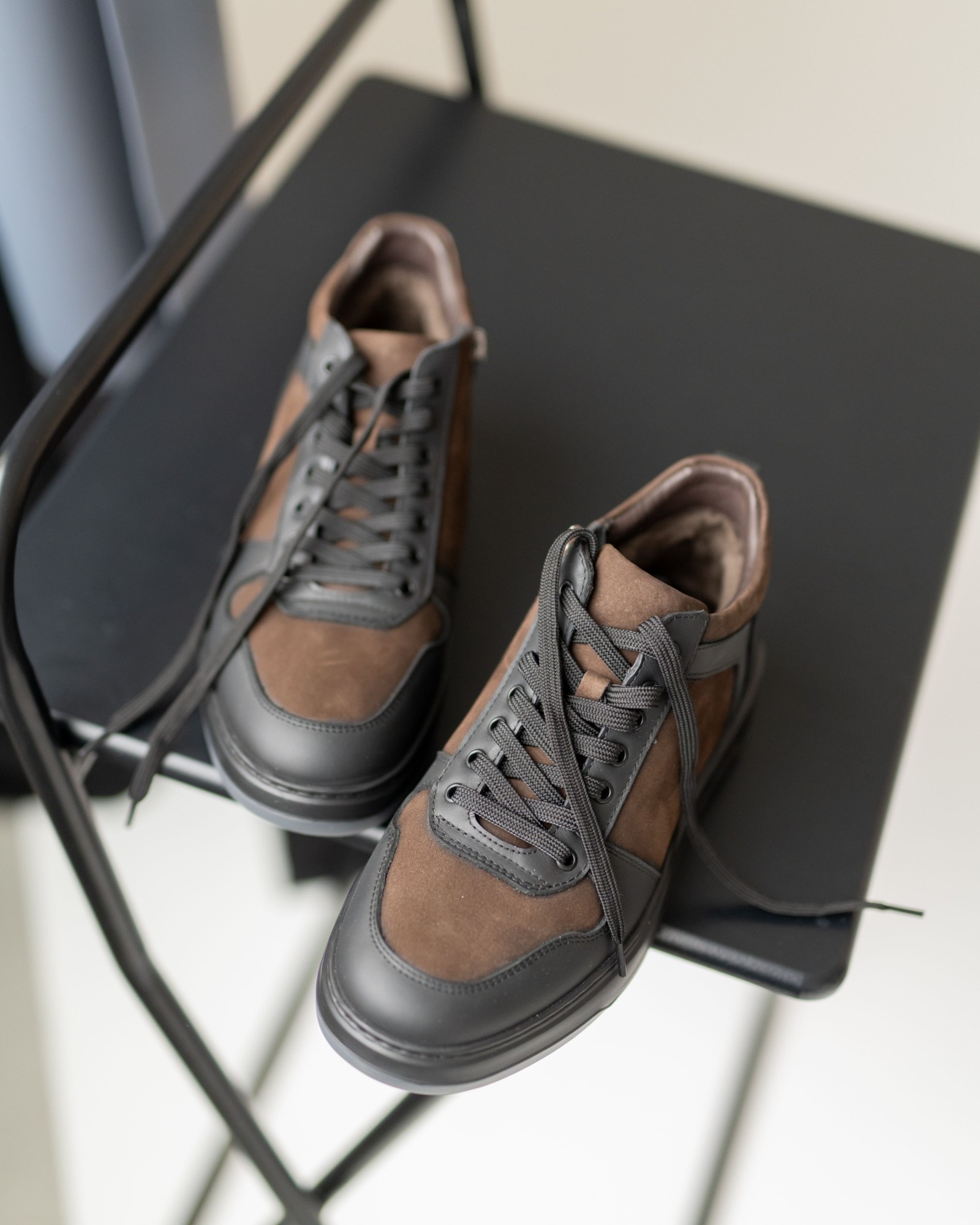 Лёгкие кеды с подкладкой из натурального меха — сочетание комфорта и выразительного стиля. Чёрный и коричневый нубук гармонично комбинируются, создавая необычный и современный образ. Мягкая посадка и лёгкая подошва делают пару удобной для долгих прогулок и активного городского дня. Эти кеды выгодно выделяются среди повседневной обуви, сохраняя элегантность и практичность. Приходите на примерку — попробуйте сами, и ваши ноги скажут «спасибо» даже в самый морозный день!