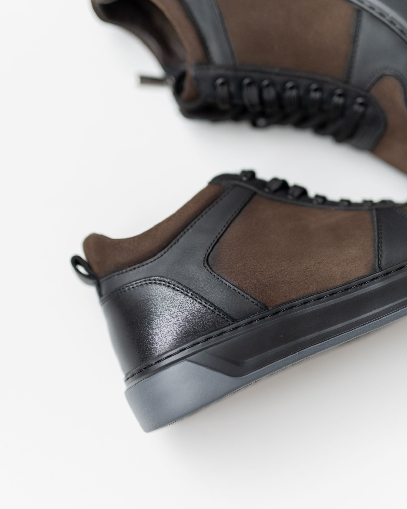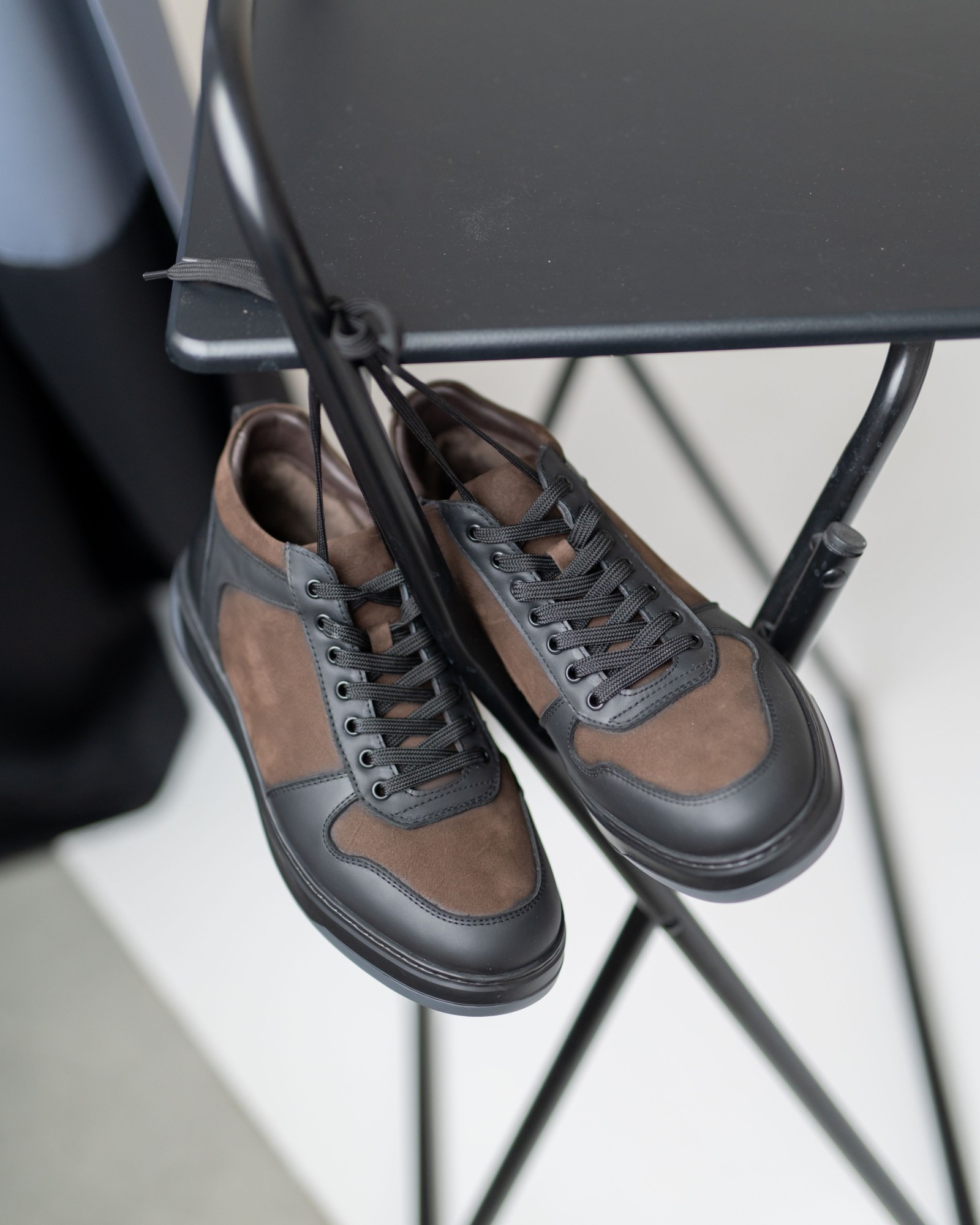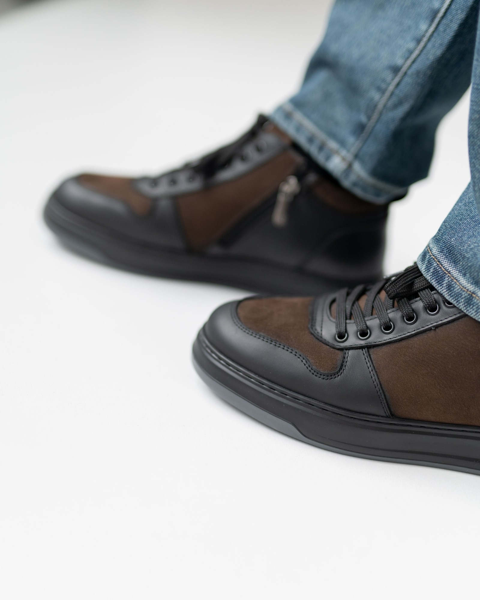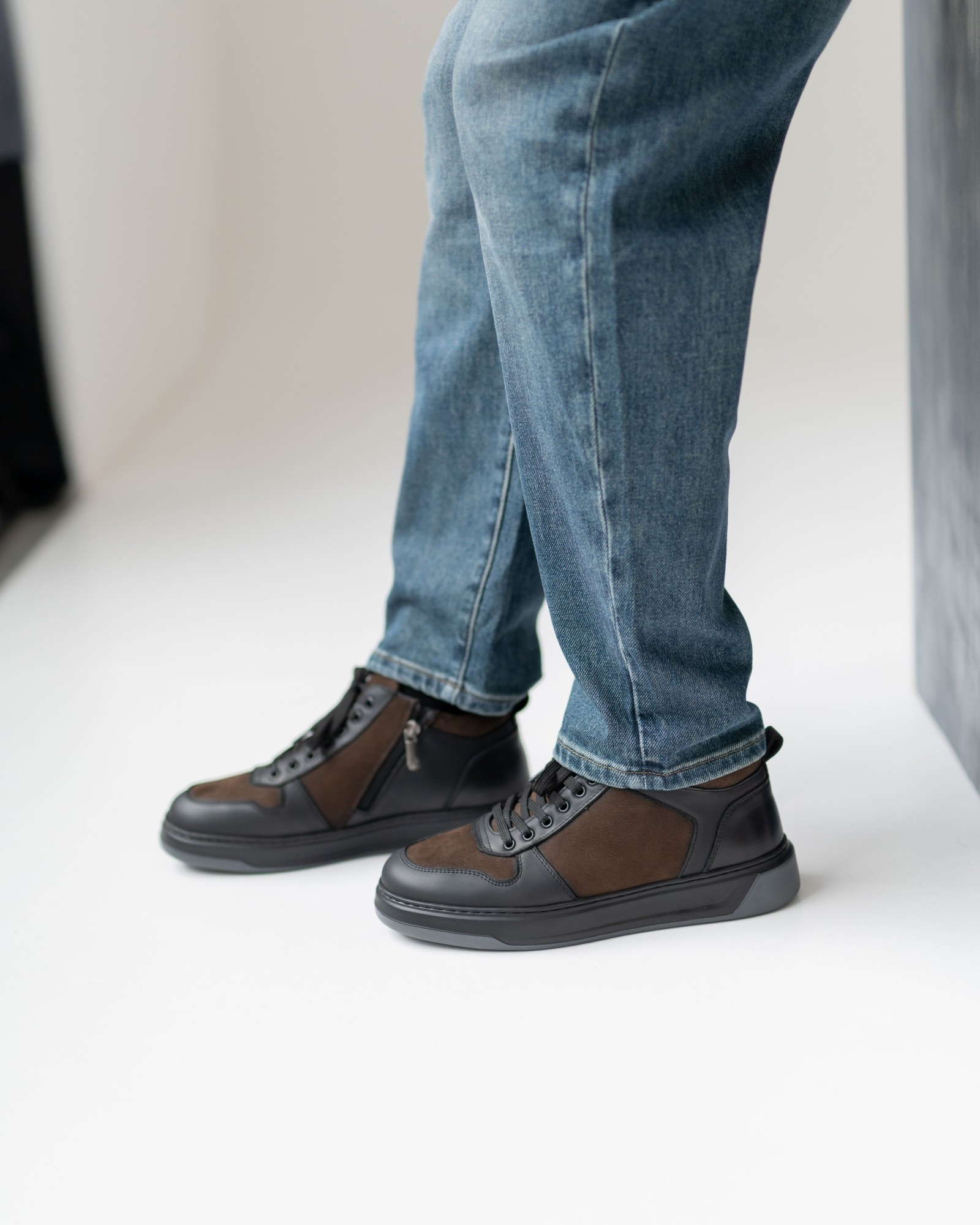 Лёгкие кеды с подкладкой из натурального меха — сочетание комфорта и выразительного стиля. Чёрный и коричневый нубук гармонично комбинируются, создавая необычный и современный образ. Мягкая посадка и лёгкая подошва делают пару удобной для долгих прогулок и активного городского дня. Эти кеды выгодно выделяются среди повседневной обуви, сохраняя элегантность и практичность. Приходите на примерку — попробуйте сами, и ваши ноги скажут «спасибо» даже в самый морозный день!