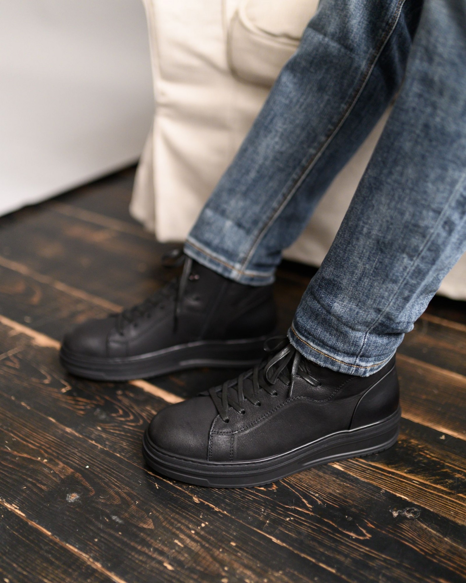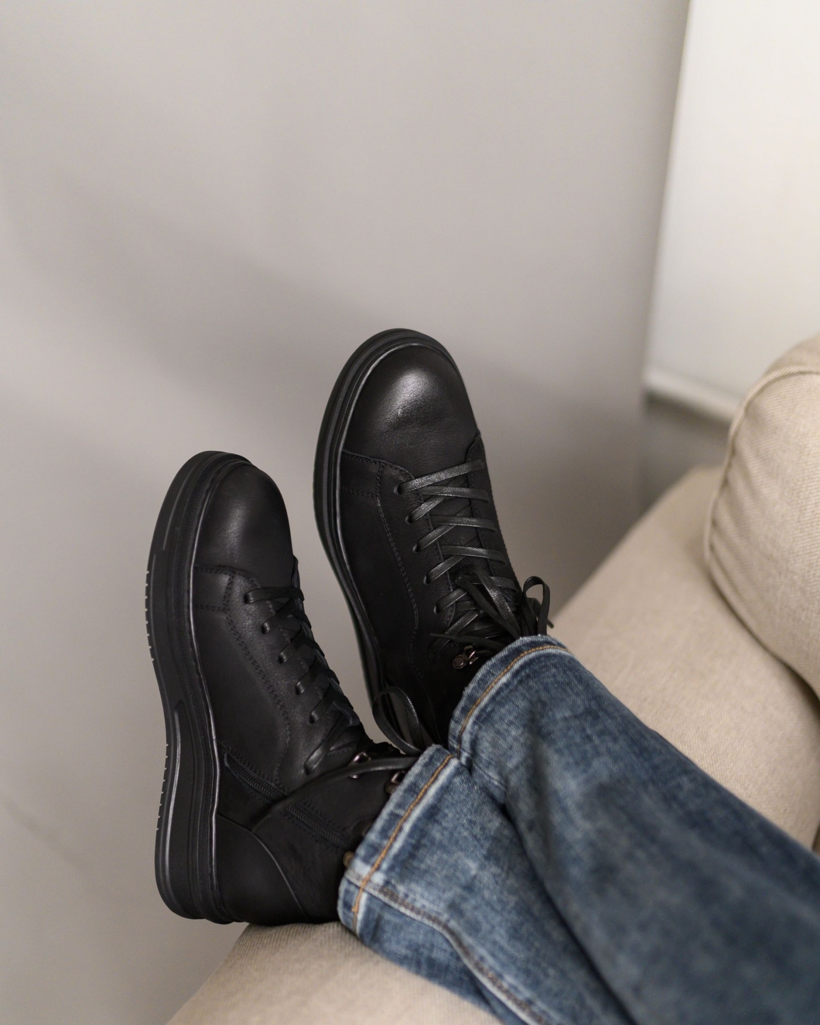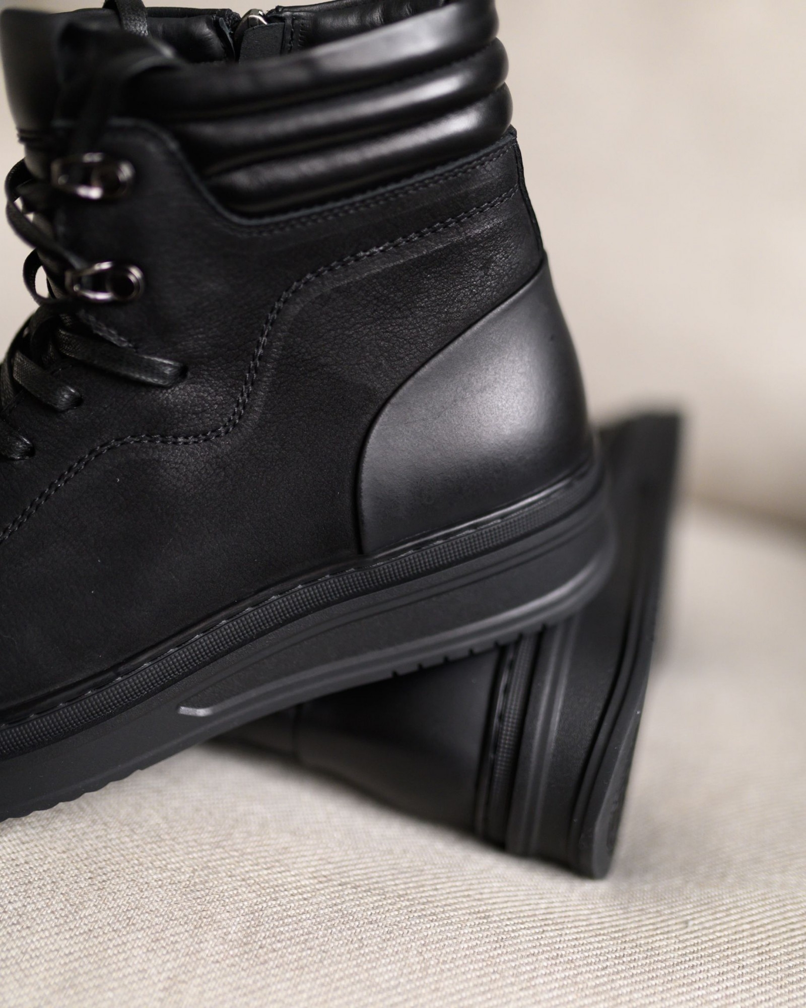Полуботинки из премиального чёрного нубука на плоской, но прочной подошве — удачное сочетание элегантности и комфорта. Благодаря качественному материалу и анатомической посадке модель идеально прилегает к ноге, не создавая лишнего давления. Подошва обладает гибкостью и износостойкостью, что делает эти полуботинки отличным выбором для ежедневного использования.