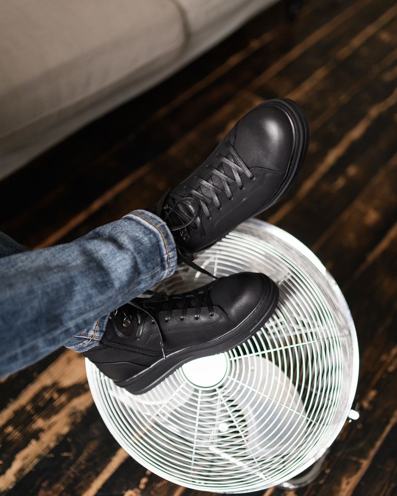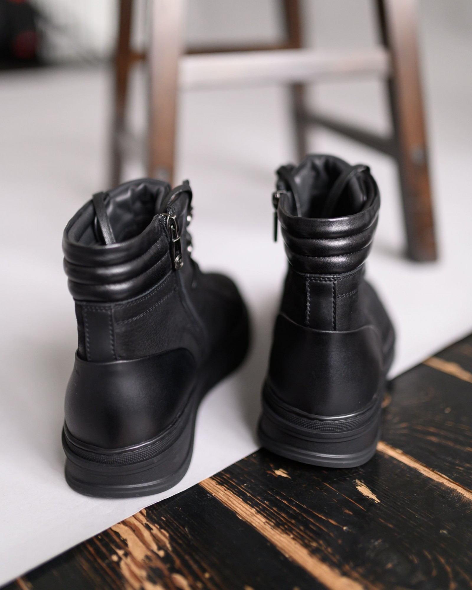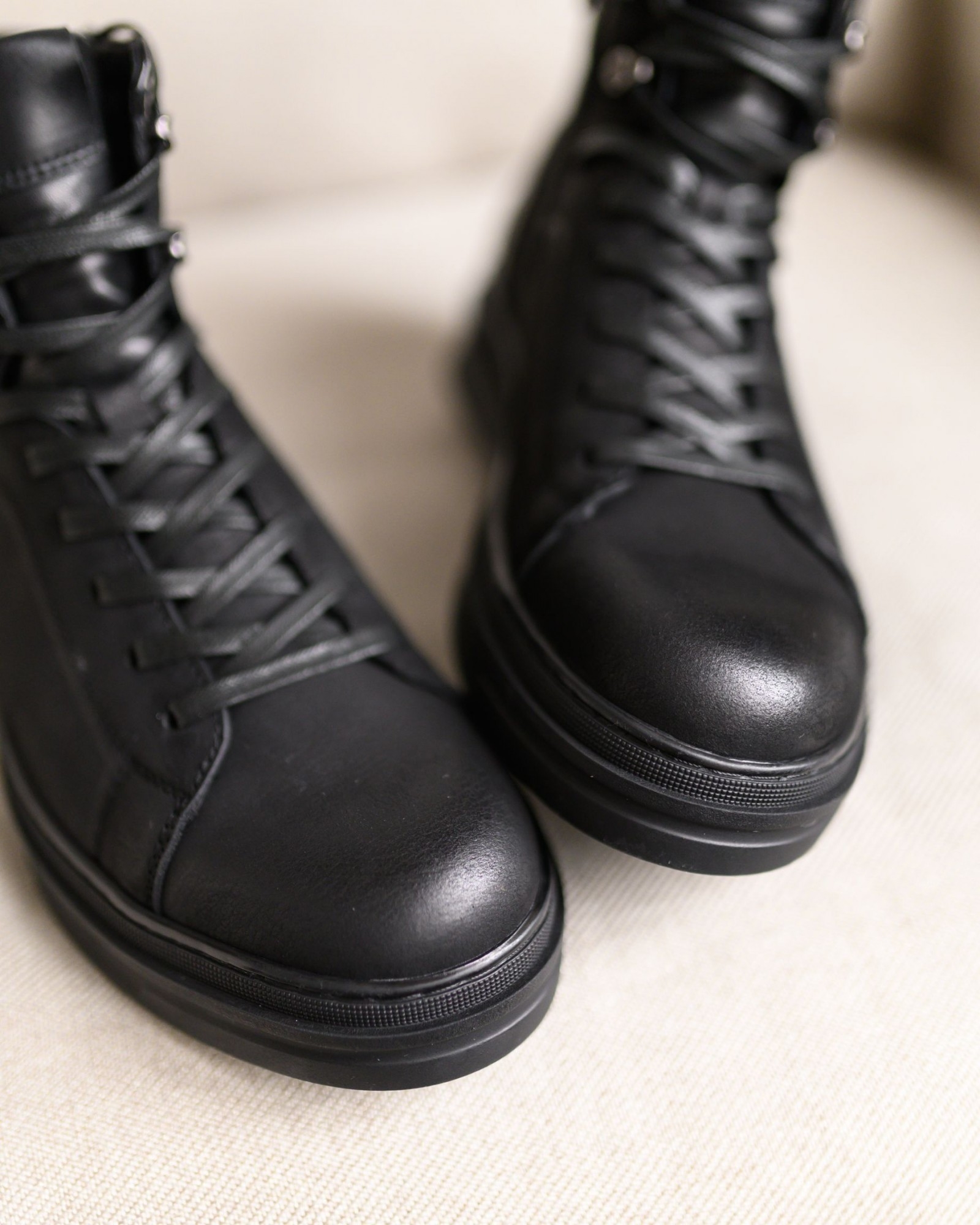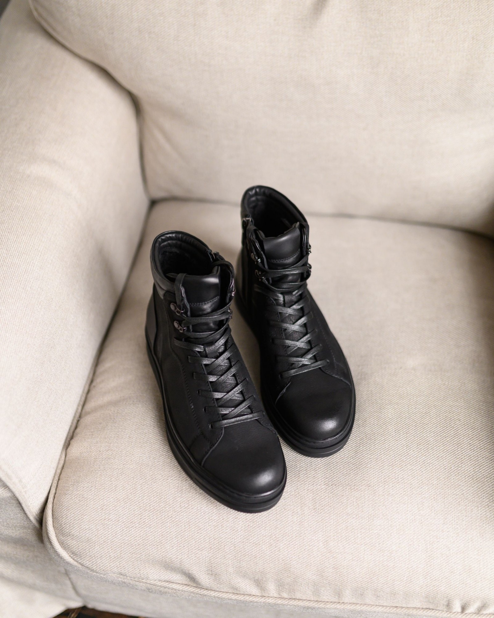 Полуботинки из премиального чёрного нубука на плоской, но прочной подошве — удачное сочетание элегантности и комфорта. Благодаря качественному материалу и анатомической посадке модель идеально прилегает к ноге, не создавая лишнего давления. Подошва обладает гибкостью и износостойкостью, что делает эти полуботинки отличным выбором для ежедневного использования.