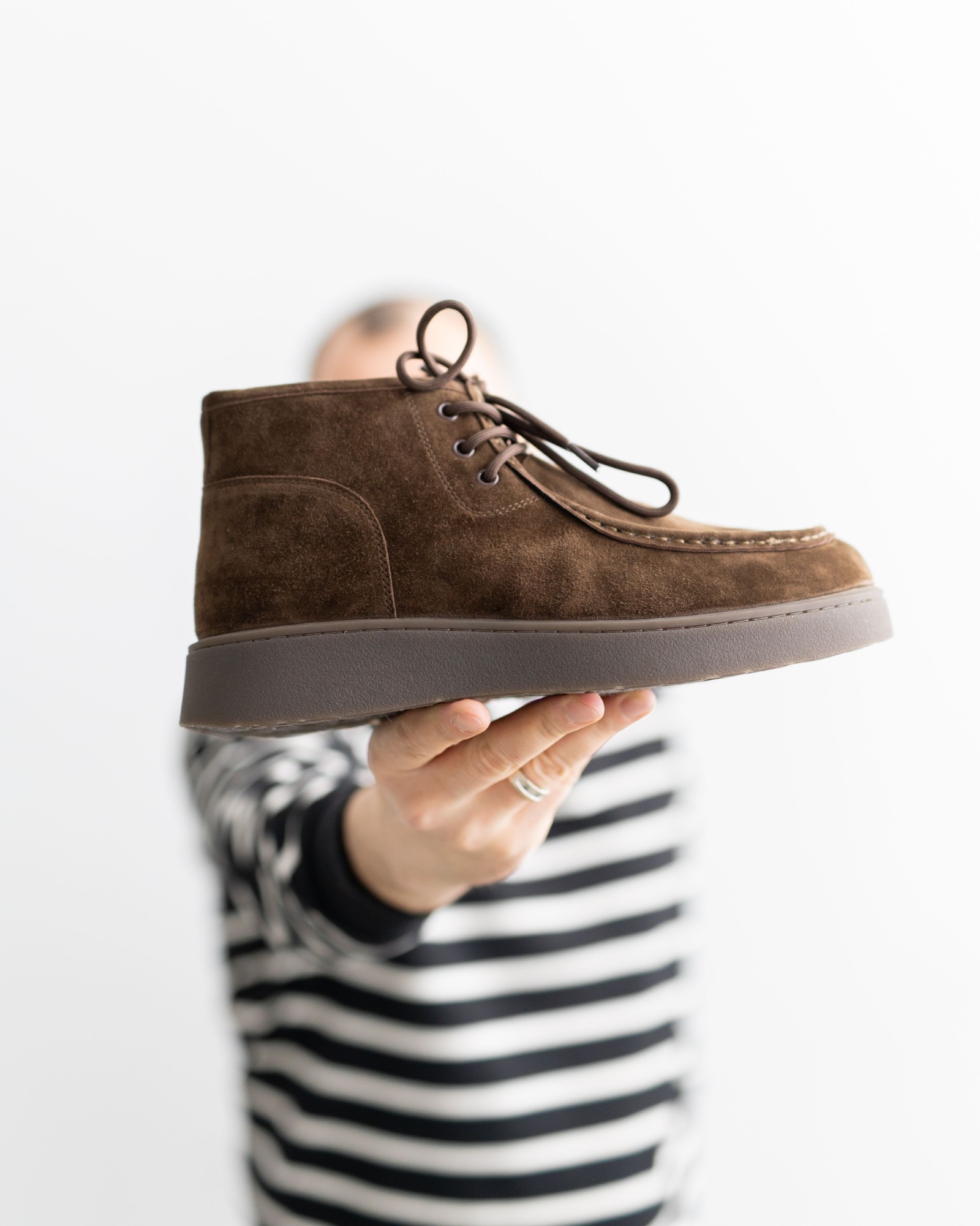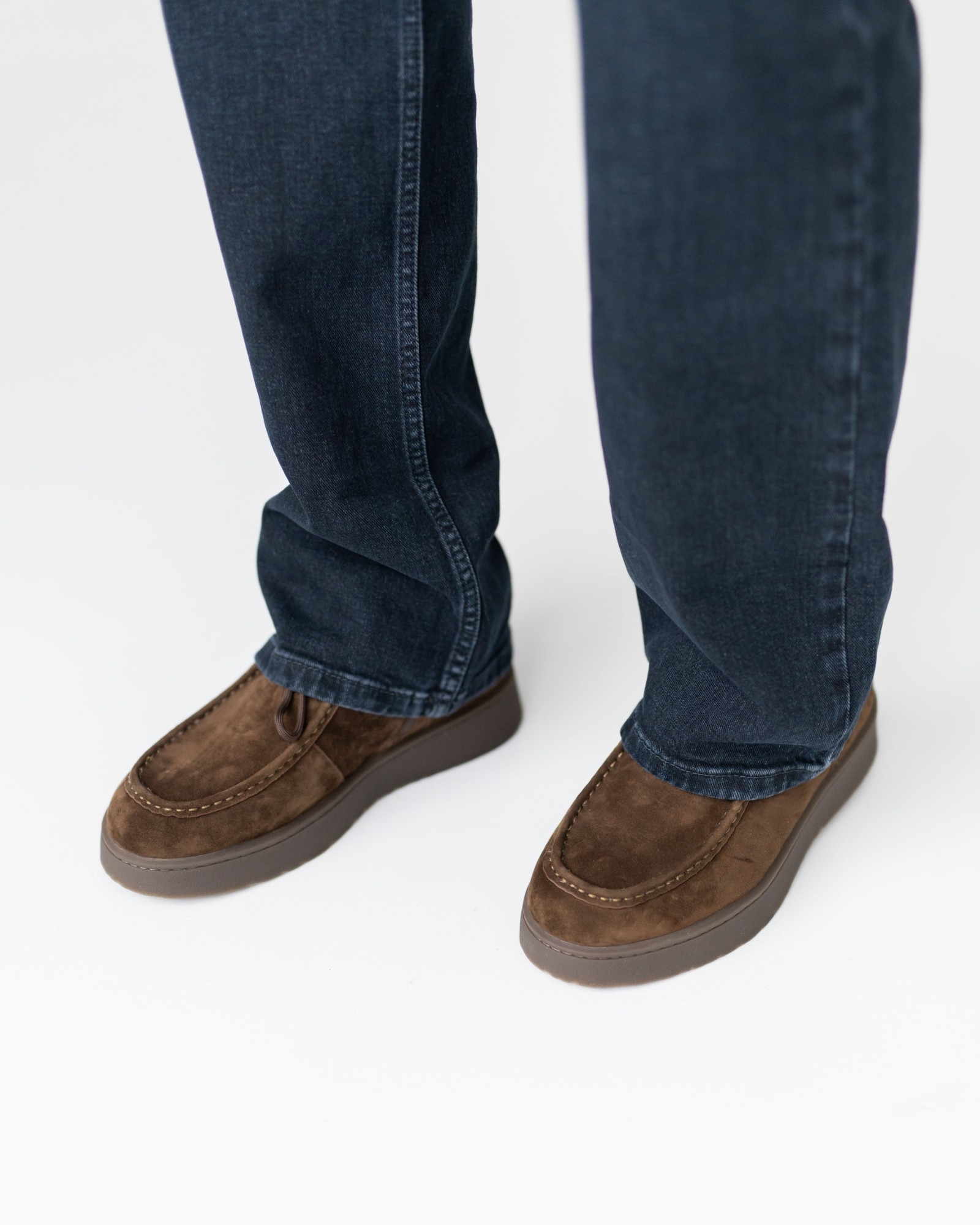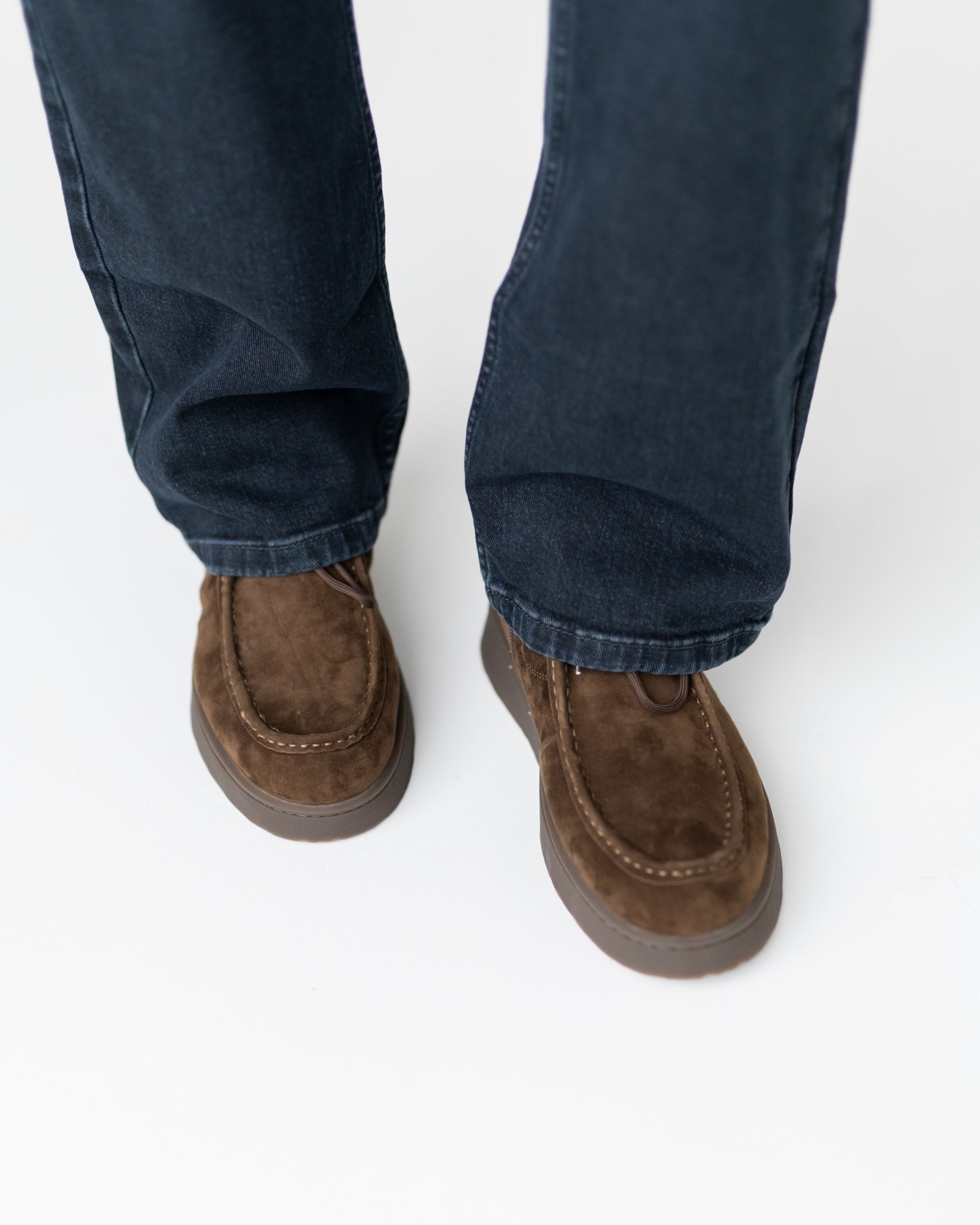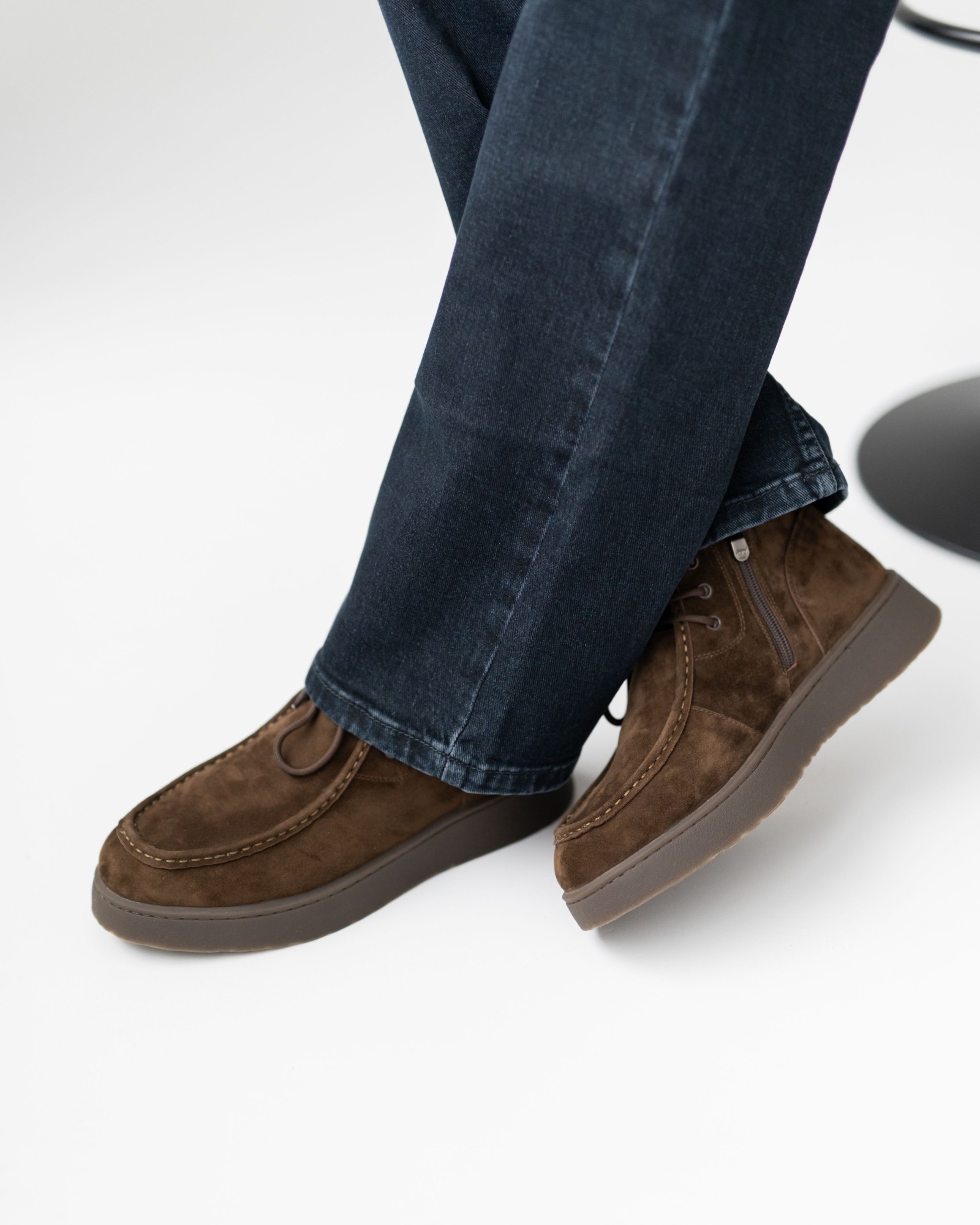Мягкие зимние полуботинки из коричневой замши с подкладкой из натурального меха — тепло, комфорт и элегантность в одном. Форма слегка напоминает бурочки, а шнуровка вместе с замком на внутренней стороне делает надевание быстрым и удобным. Натуральный мех сохраняет ноги в тепле даже в самые холодные дни, а качественная замша придаёт паре премиальный вид и долговечность. Лёгкая, устойчиво сбалансированная подошва обеспечивает уверенный шаг на любой поверхности. Приходите на примерку — оцените комфорт и стиль вживую и убедитесь, что эта пара создана именно для вас!