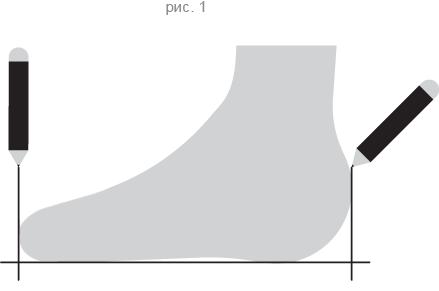 2. Карандашом очертите ступню (см. рисунок 1). При измерении держите карандаш строго вертикально и следите, чтобы карандаш находился в постоянном контакте со ступней во время всего процесса.