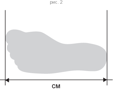 3. Для определения длины стопы измерьте расстояние между самыми удаленными точками чертежа по длине так, как это показано на рисунке 2.